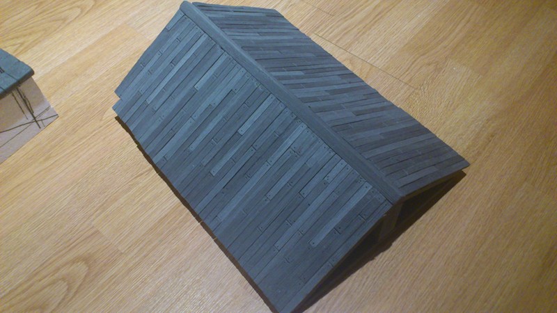 Además necesitaría opinión. Cuando estuve haciendo los tejado tanto del establo como de la torre, pensé que lo mismo le quedaba bien si le hacía un tejadillo a la puerta, pero no me terminó de convencer. Tenía el "esqueleto" preparado y al poner la escalera y sobreponerlocon alambres no me ha desagradado, asi que necesito segundas opiniones XD.