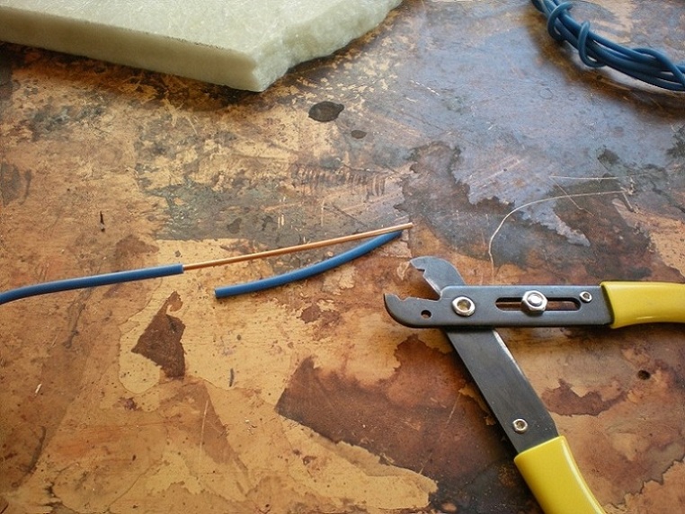 2- Cortamos un trozo de cable de cobre semi-rígido.