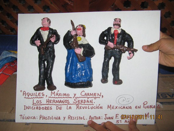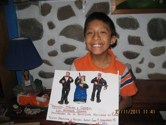 Pilita, Juanito y su maqueta de los hermanos Serdán (los iniciadores de la revolución mexicana en Puebla, Pue) perdonen amigos esta interrupción momentánea de las fotos del montaje, solo será esta, ya que mi niño quiere mostrar su trabajo a Pilita. Saluditos.
