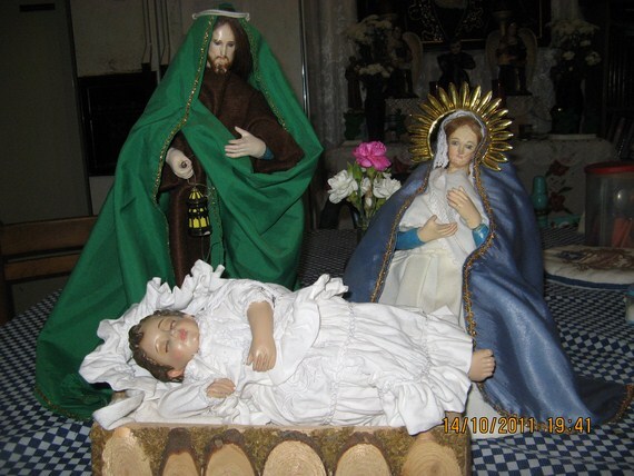 CarlosC y Carlos (Piña) gracias por sus comentarios, como comenté estas figuras las tengo en mi habitación, las imágenes son de madera (ya me las restauraron una vez y le pedí al restaurador que no se metiera con las caritas, para que no fueran a cambiar su expresión) verdaderamente el Niñito Jesús es hermoso y tiene esa expresión de sueño apacible que tienen los bebés cuando duermen.