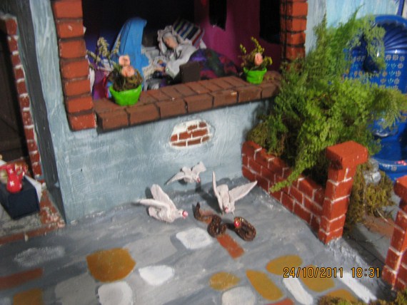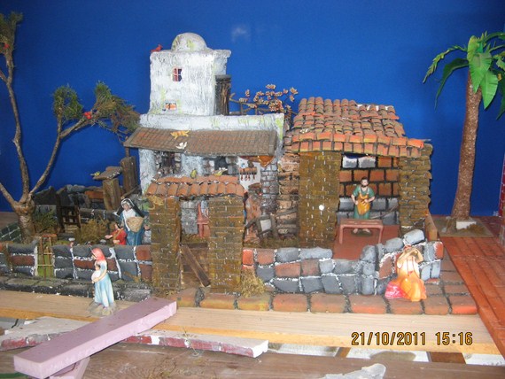 Subida de la casa de Nazareth (aclaro que empieza su montaje) donde Jesús crece en fuerza y sabiduría y el Poder de Dios estaba con él. Se mira un poco del taller de san José (igual en principios) el Niño Jesús alimenta a las gallinas en compañía de su abuelita santa Ana.