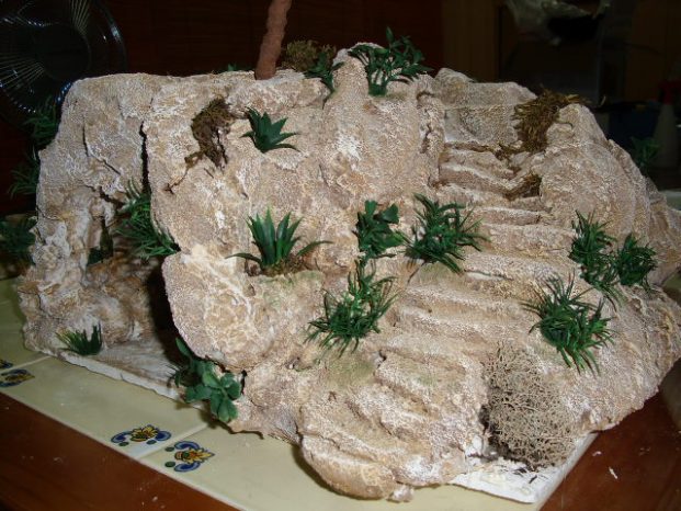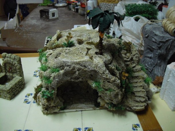Os pongo unas fotos de la montaña con cueva para la anunciacion que estoy terminando, falta una casa encima y una palmera, cuando la termine os pondre unas fotos. saludos