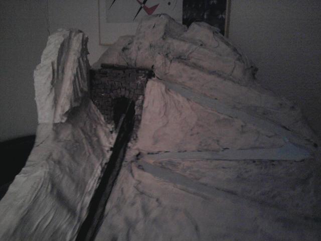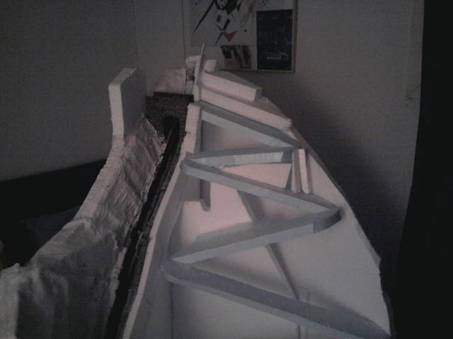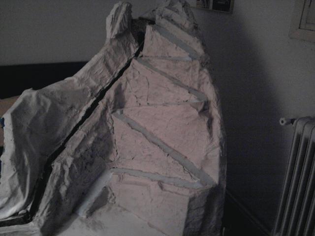 El camino es de porex extruido, para pintarlo luego directamente. El resto fue rellenar los espacios entre "pisos" con porex y cubrir este, con tela mojada en escayola.