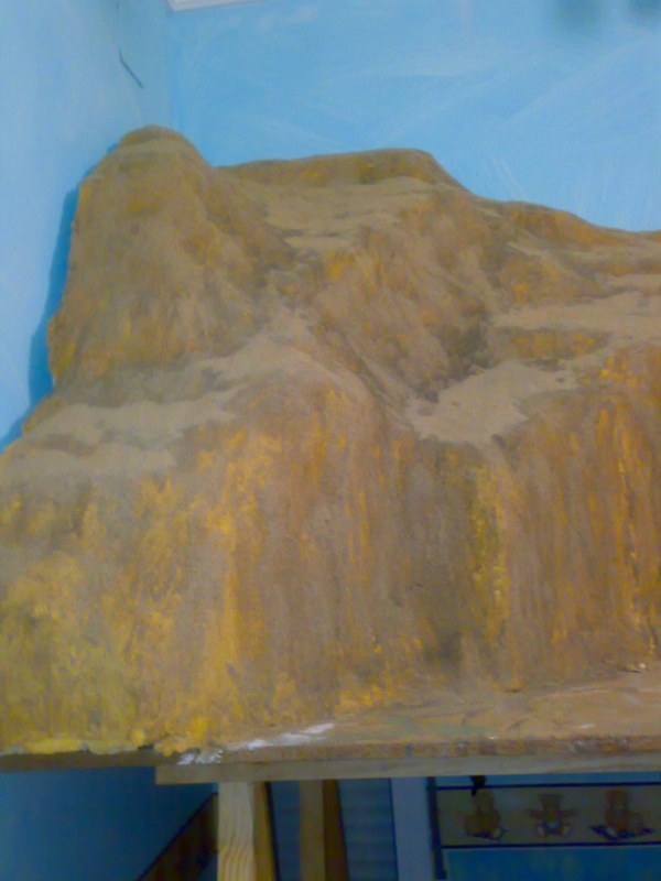 Se espera a que seque la escayola ,y con albero y negro se saca un color verde oscuro,con el que se pinta toda la montaña. (foto 5).