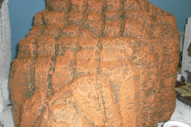 Se espera a que seque la escayola ,y con albero y negro se saca un color verde oscuro,con el que se pinta toda la montaña. (foto 5).
