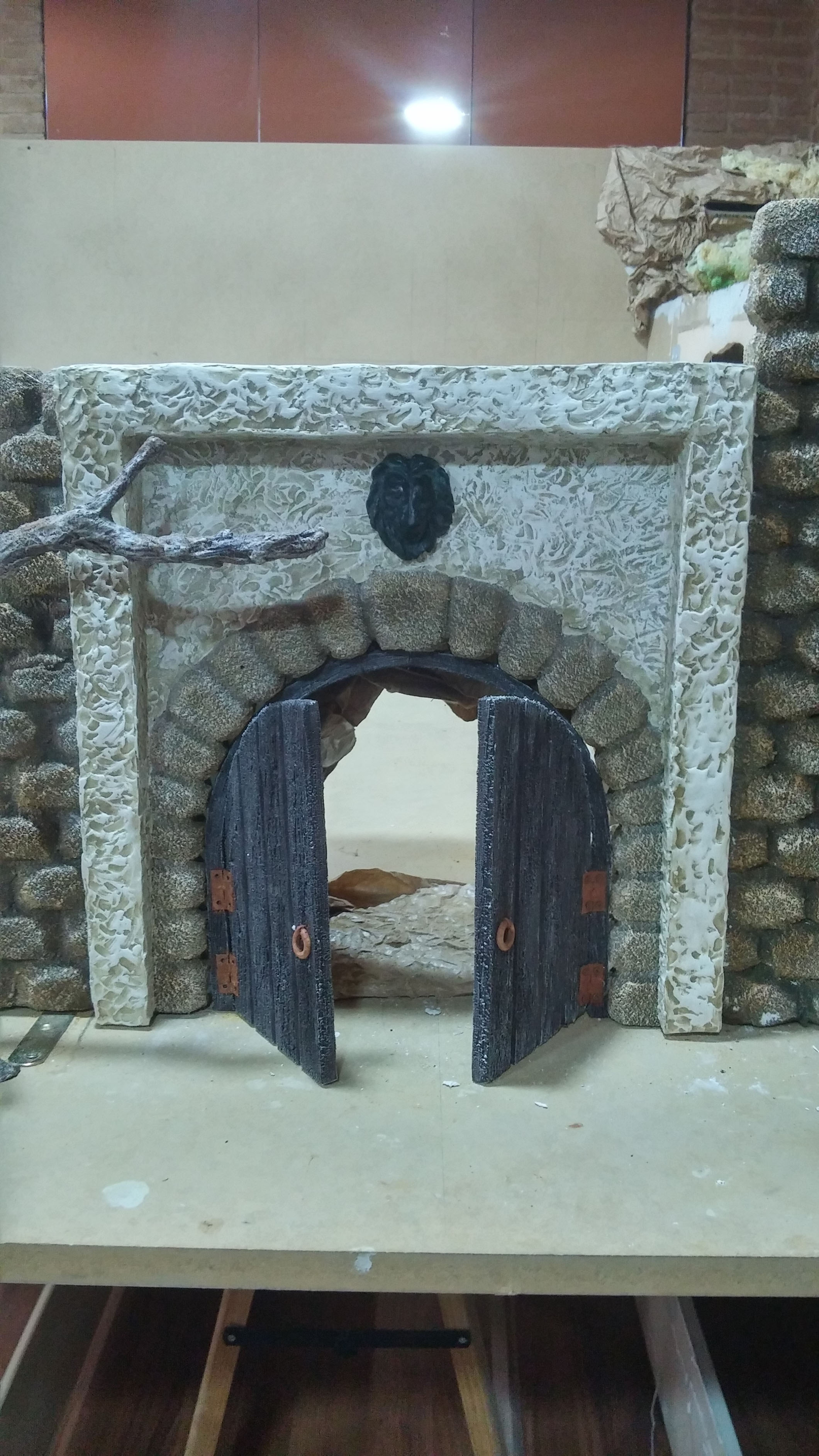 Muy buenas tardes amigos. Pues el fin de semana pasado aproveché que vino mi tío Fran "el manitas" y fuimos dos para avanzar el belén. La verdad, que junto a él se avanza mucho más, bastante más que cuando soy yo solo... Al grano, a la principal puerta de la muralla le faltaba la pilastra derecha, como alguno de vosotros bien dijo, que ya está acabada. Decidimos que en la esquina tenía que ir una torreta de control, así que la diseñamos y nos pusimos manos a la obra, trabajo que también acabamos. Y también, respecto a la muralla, estuvimos tallando y enfoscando la 2ª parte de esta, trabajo que no terminamos, pero que sí haremos esta semana que entra pues ya hemos acabado el instituto. Mi tío Fran, como buen experto en bellas artes, es el que me lleva el trabajo "ARBOLES SECOS". Esto es un tema que se va un poco de las manos por lo que dejo al experto que actúe jejejejeje. Como anterior día dije en otro mensaje, crearé un post para explicar este procedimiento. Como siempre digo, muchas gracias por vuestra atención. Pediría consejos de expertos como vosotros, pues esto empezando en esto y me gusta aprender cosas nuevas todos los días. Gracias una vez mas.