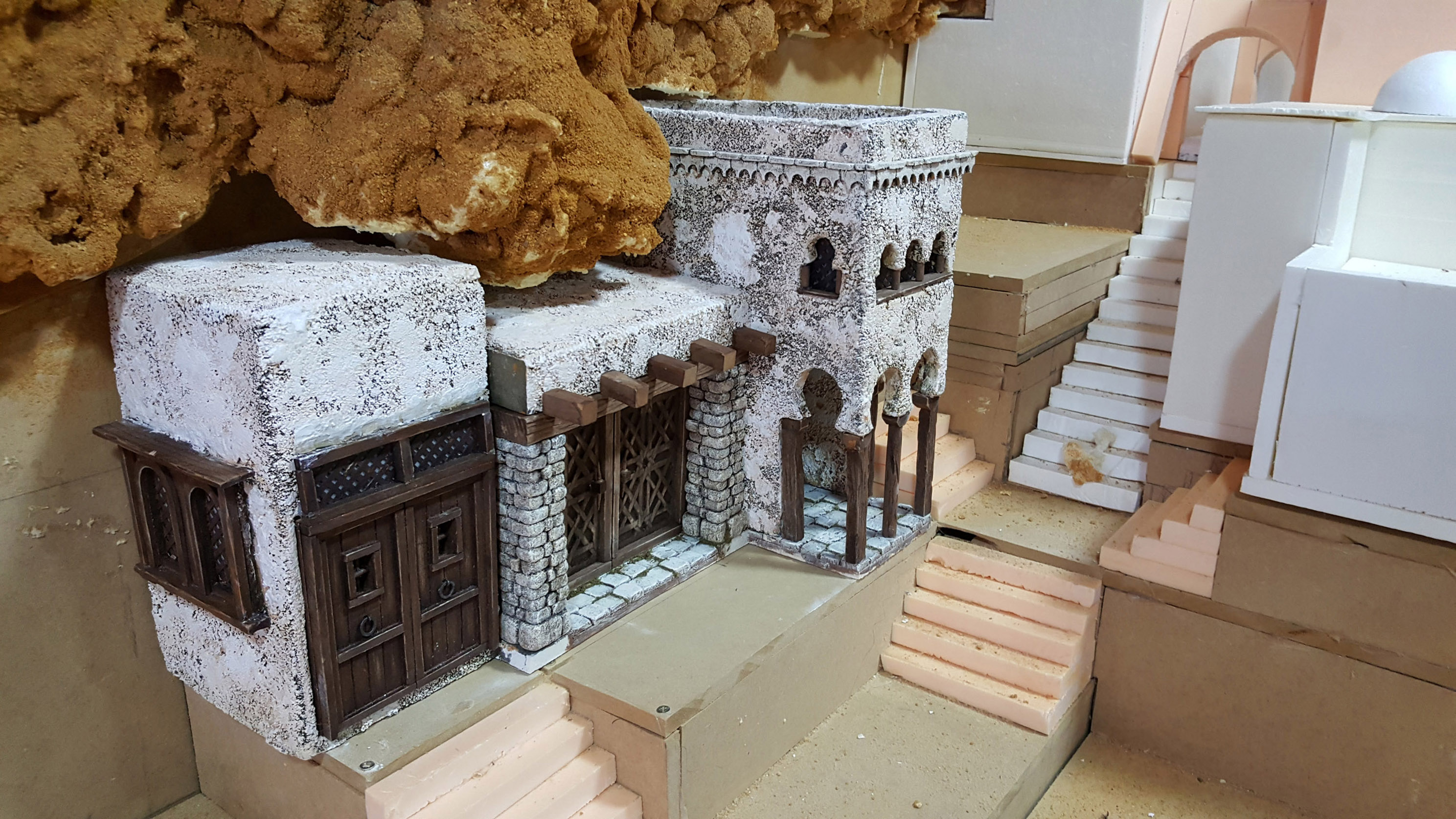 La última vez que publiqué en el foro nos quedamos en la "Casa de las Celosías". Pues bien, hemos avanzado más el belén en estas dos semanas que casi en todo el año jijiji.