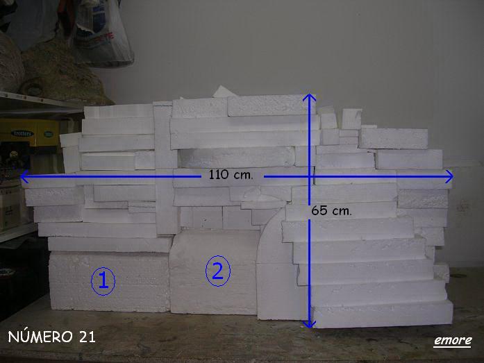 Mario, si te refieres a la pared que he pintado de color azul en la foto número 19, efectivamente, puse una pieza vertical de poliestireno expandido de 5 cm. de grosor por 30 cm. de alta, como indico en la foto número 20. Sobre dicha pieza pegué las piezas número 1 y 2 que indico en la foto número 21. Tenía que haber sacado una foto de la parte trasera de la fotografía número 1 y hubiera quedado muchísimo más claro.