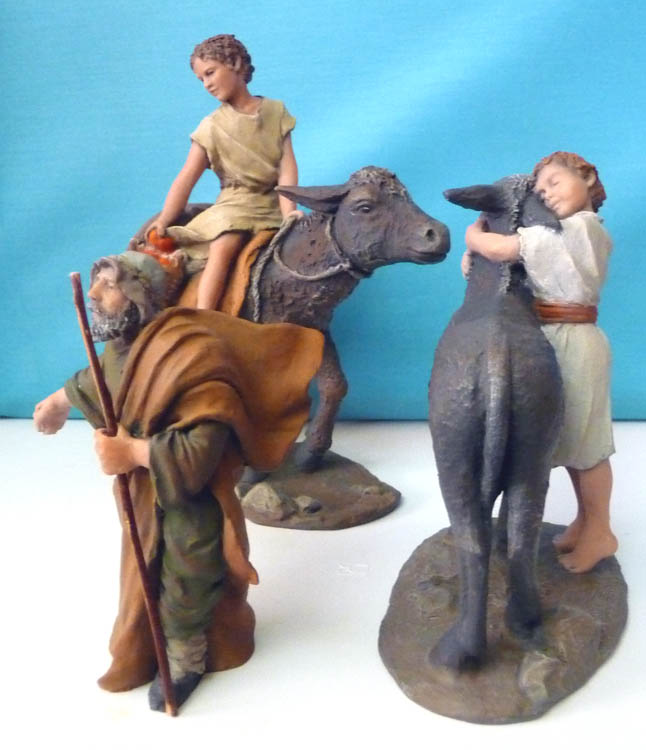En el tradicional viaje a tierras catalanas de la Asociación de Pamplona ,estuvimos un buen rato en el taller de Montserrat Rives y la verdad en vivo y en directo tienes piezas muy buenas y encajables en cualquier belén ,este conjunto que ha puesto Iñigo esta muy bien ( animales no comento ) y claro esta , ver figuras tenerlas en la mano y no comprar ,pues empresa difícil y caí en la tentacion y compre el niño montado en burro ,la pongo sin policromar ,era una de las que tenia por el taller ,la mía esta pintada