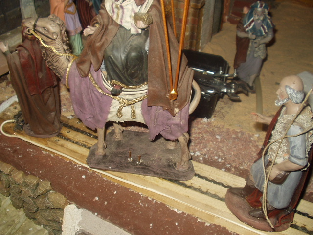 si alguno de los foreros me llama por telefono le explicaria el montaje de la cadena y todo lo que he hecho para quelo ponga aqui en el foro ya que hoy voy ha escribir algo mas por que esto es para dar una idea de lo he echo para que durante el dia vallan los reyes hacia adelante como si fueran caminando ya que el motor no funciona continuamente durante el dia va a tirones muy despacio dando la sensacion de ir caminando ya pondre un video y cuando llega la noche el motor funciona sin dar tirones y ha toda velocidad hacia tras en un momento que el belen esta ha oscuras vuelven ala posicion de inicio muy rapido y cuando empiesa ha amanecer van otravez despacio y ha tironsitos en cada tiron avansan como un par de centimetros cada segundo aproximadamente