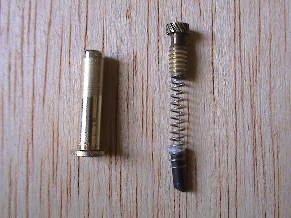 Con una pieza reciclada de no me acuerdo que, ( creo que era de un tocadiscos ) unos trocitos de chapa, un muelle y una piedra de mechero, fabriqué el artilugio y lo sujeté en la tapa con otra tuerca.
