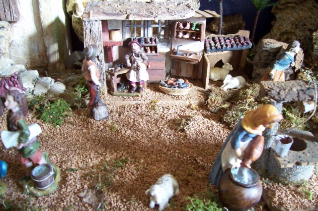 Hola María, un bonito y original Belén, las construcciones están bastante bien, lo único que yo haría es, enterrar las peanas de las figuras....por lo de más ¡¡excelente!!