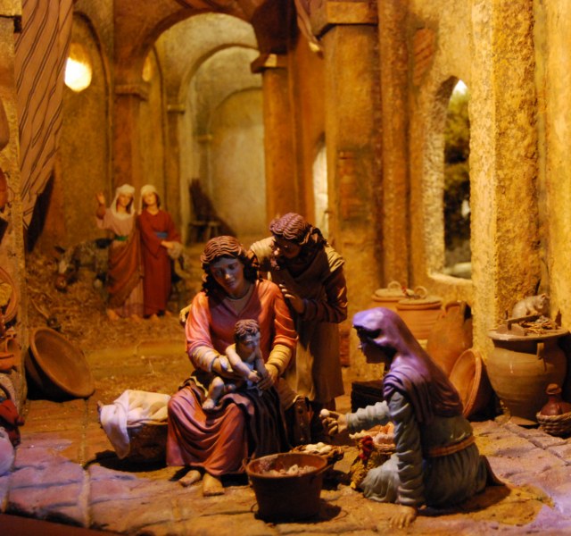Adorando en el belén son todas mujeres porque hemos querido seguir la linea de las mujeres cigarreras que tanto trabajaron en esta época, y ha sido un pequeño homenaje a esta labor.