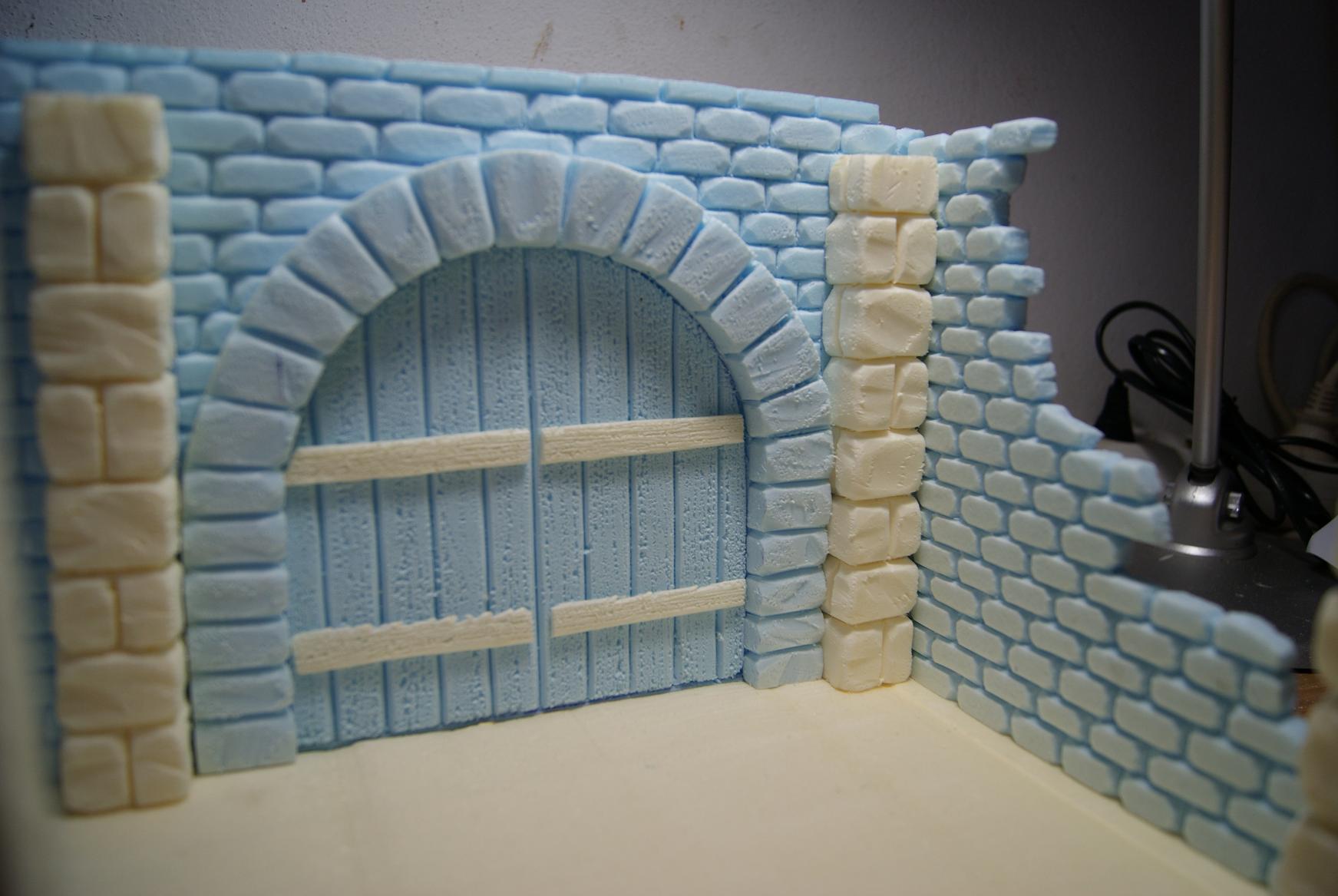 Último toque: Negro muy diluido y verde militar con un toque de ocre muy diluido. El negro muy, muy, pero que muy diluido, yo lo utilizo en las esquinas y debajo de salientes, maderos, etc... dando la sensación de suciedad. El verde utilizalo en aristas al ras del suelo y rincones donde normalmente bajo tu juicio creas que se puedan crear humedades.