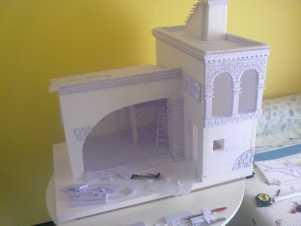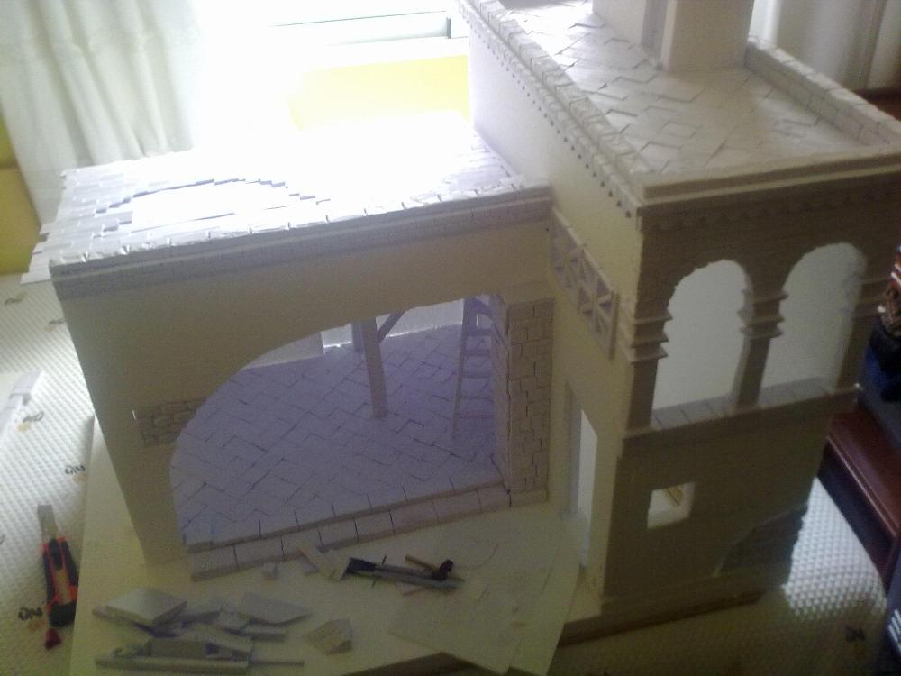 Una construcción muy bien trabajada, me gusta,lo que quizás tendrías que hacer es ensuciar un poco las paredes por las juntas, te quedaría genial.