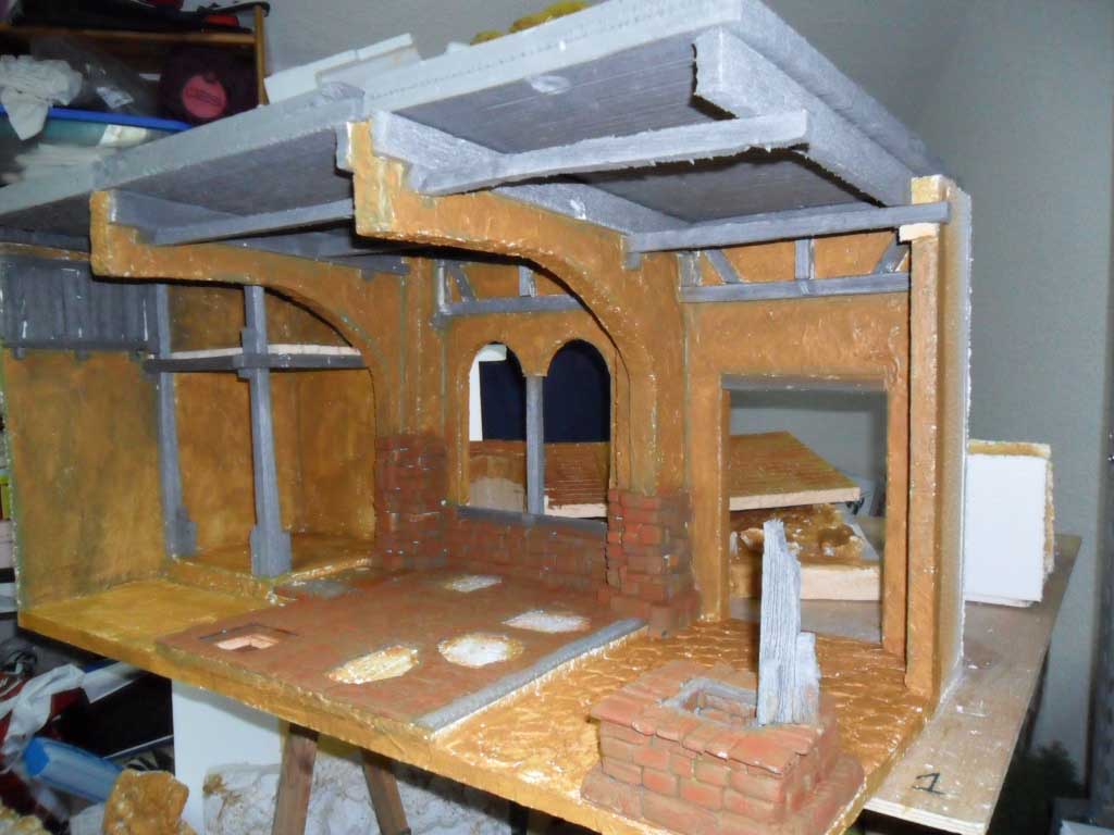 Os enseño mi trabajo a medio terminar. Será un diorama de un metro cuadrado, donde la principal escena será el portal que veis en imagenes (todavía esta en la segunda veladura). La embocadura será original porque se podrá ver el Nacimiento de frente y tb por el lateral de pozo (un esquina de la embocadura hace 90º).