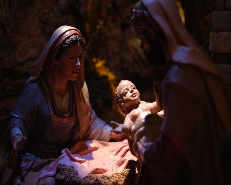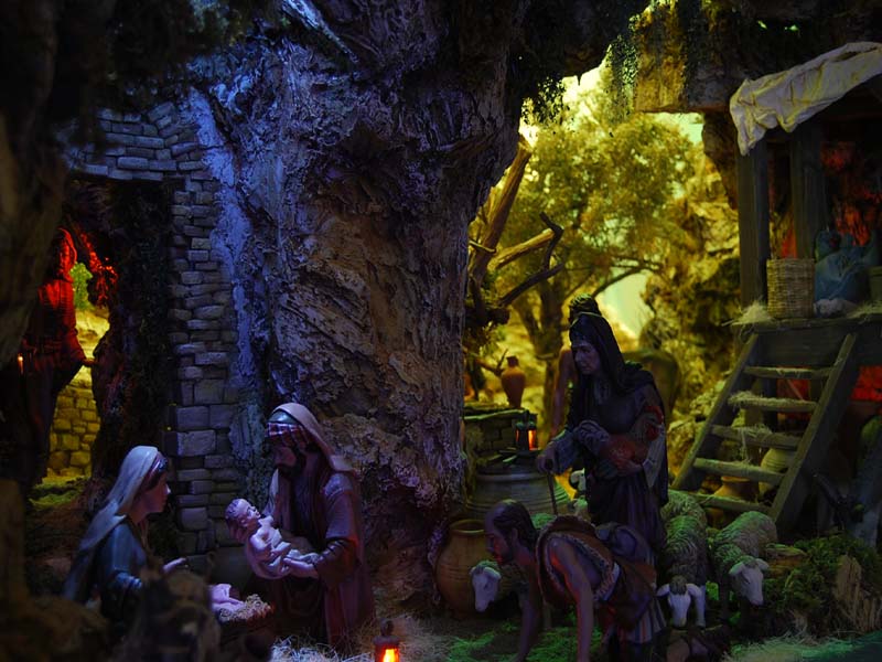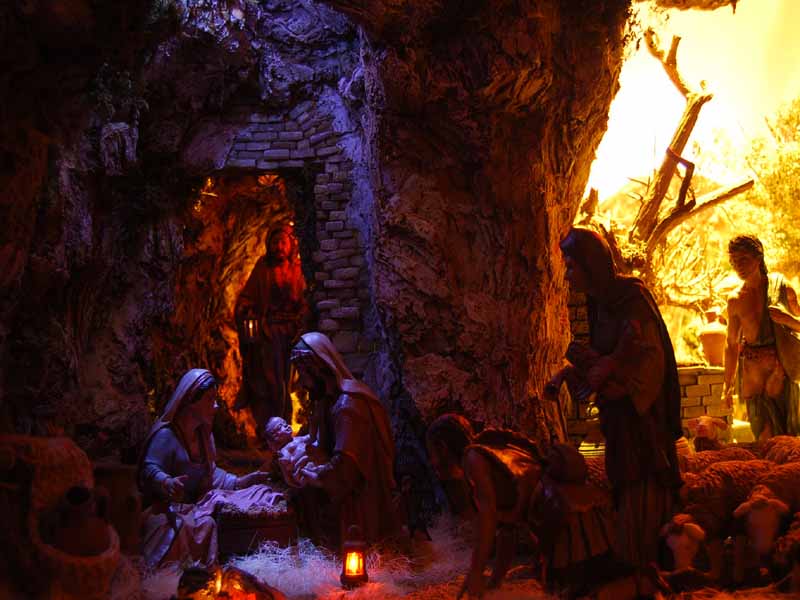 «Había en la misma comarca unos pastores que dormían al raso y vigilaban por turno durante la noche su rebaño. Se les presentó el ángel del Señor: la gloria del Señor los envolvió en su luz, y se llenaron de temor. El ángel les dijo: "No temáis, pues os anuncio una gran alegría, que lo será para todo el pueblo: os ha nacido hoy, en la ciudad de David, un salvador, que es el Cristo Señor. Y esto os servirá de señal: encontraréis un niño envuelto en pañales y acostado en un pesebre". Y fueron a toda prisa, y encontraron a María y a José, y al niño acostado en el pesebre.