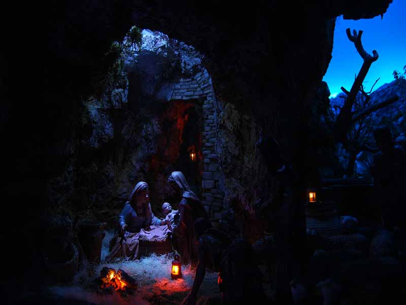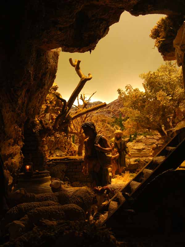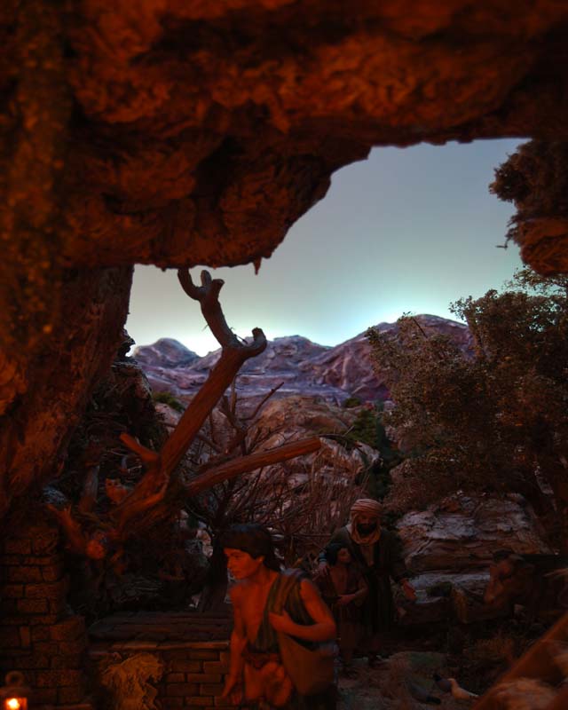 Para ello, he intentado recrear una gruta, y un paisaje lo más rústico posible (no hay construcciones como en años anteriores) con rocas, vegetación y las montañas en lejanía.