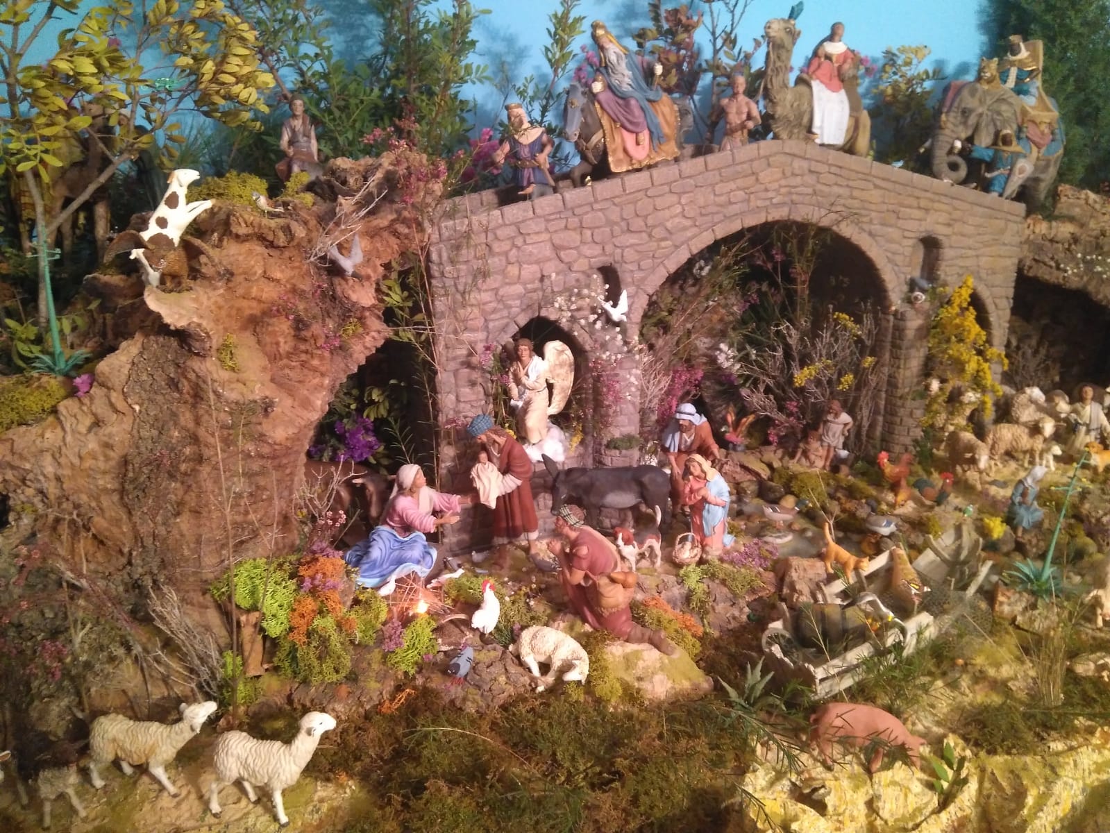 Enhorabuena porque has logrado una de las cosas más complicadas, a saber, combinar figuras de diferentes autores con destreza.Si a esta añades unas bonitas escenas , paisaje y vegetación el resultado es un hermoso belén.