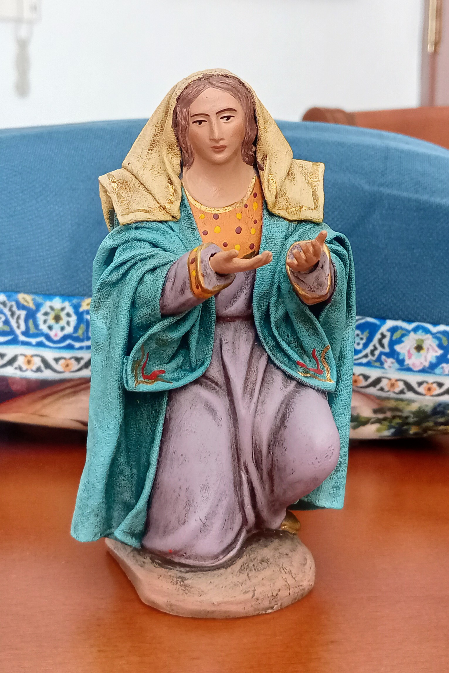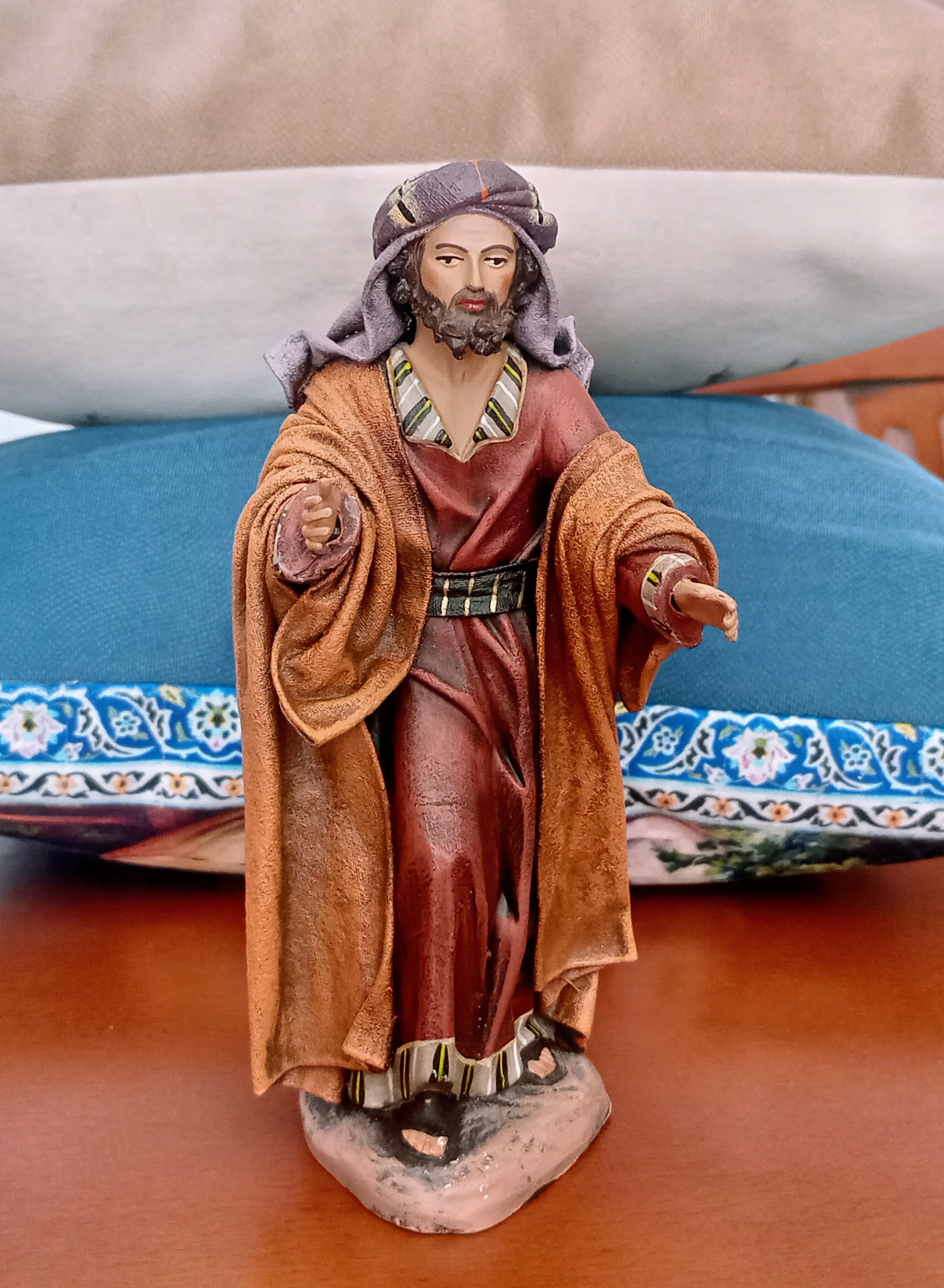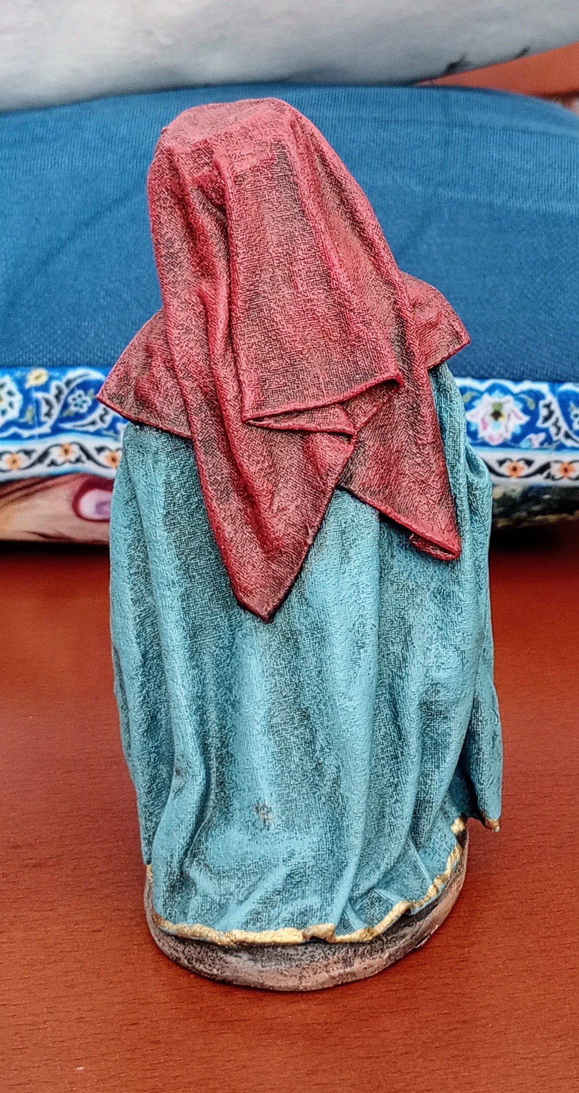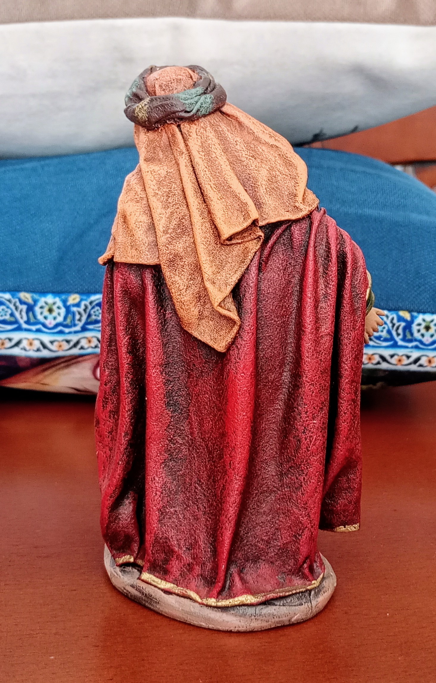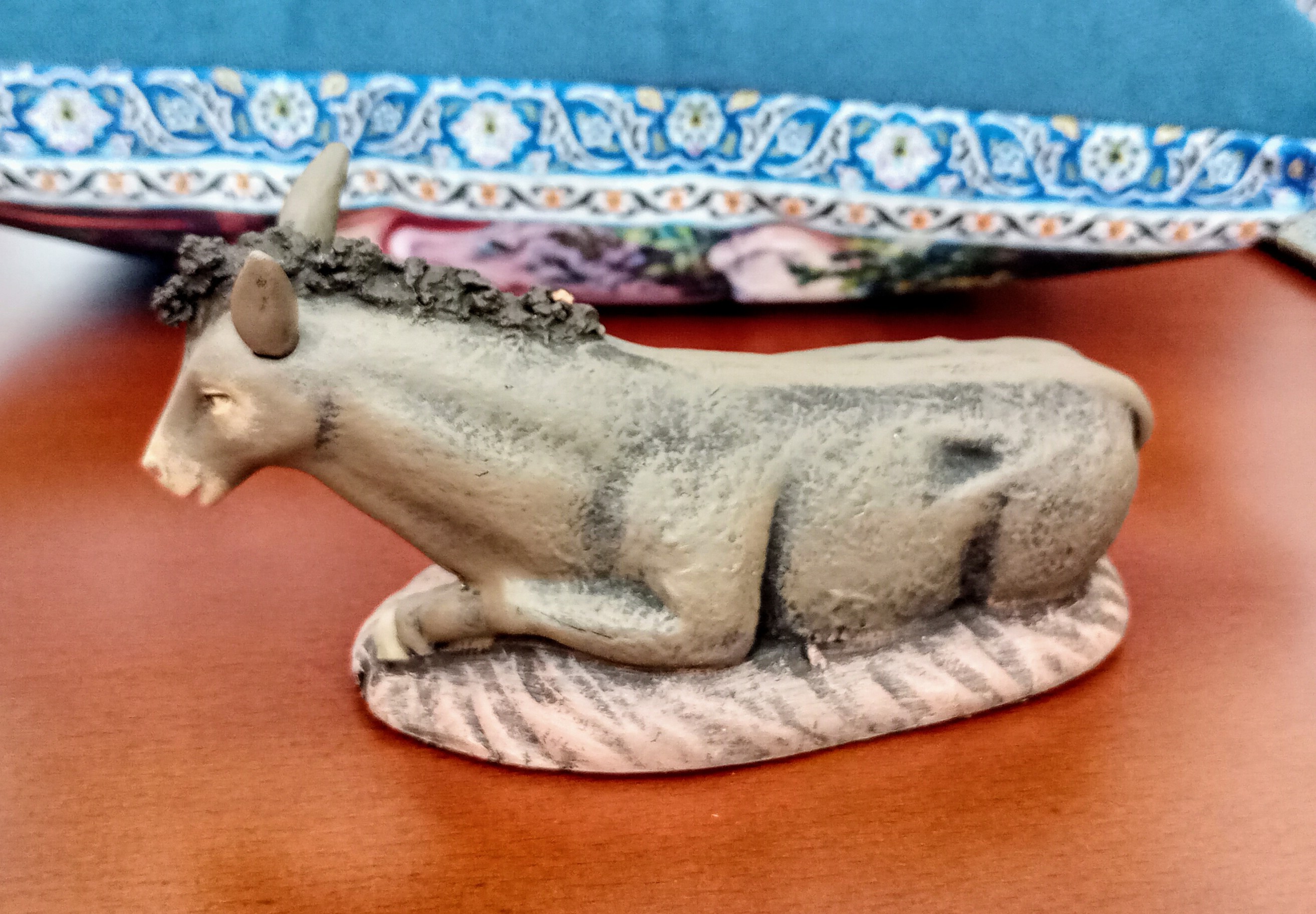 Se vende nacimiento de 17cm. en muy buen estado, completo, en barro de Maestros Artesanos, compuesto de María, San José, niño Jesús, pesebre, burro, buey, ángel, 3 reyes y construcción incluida.