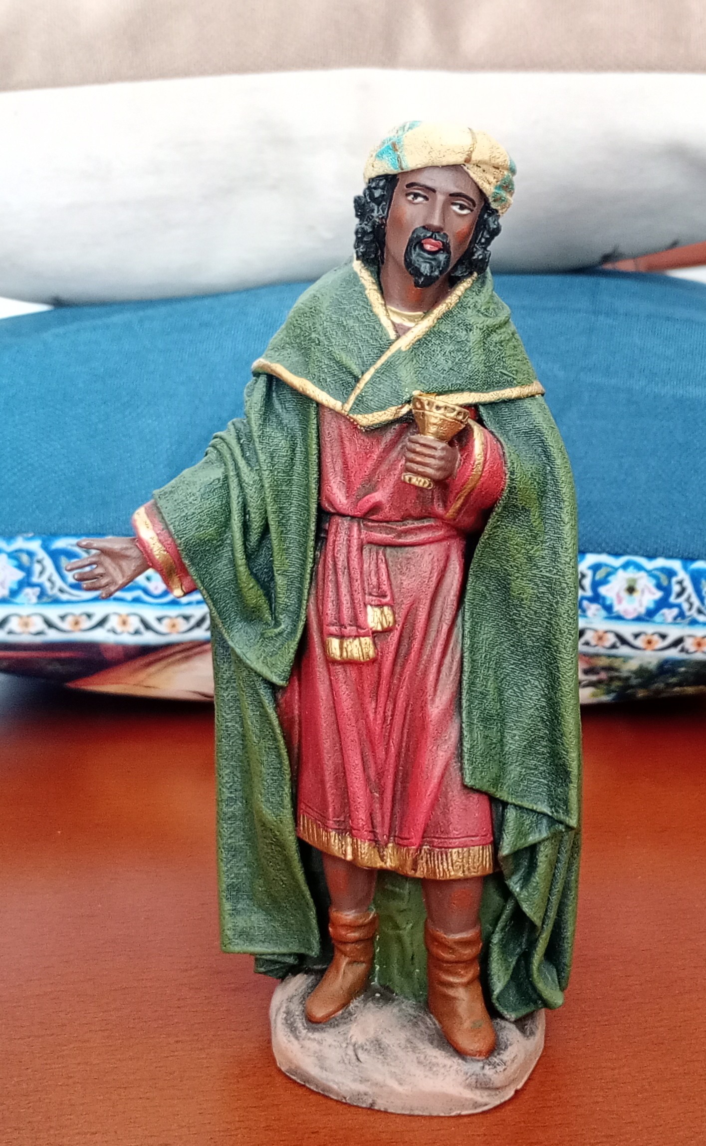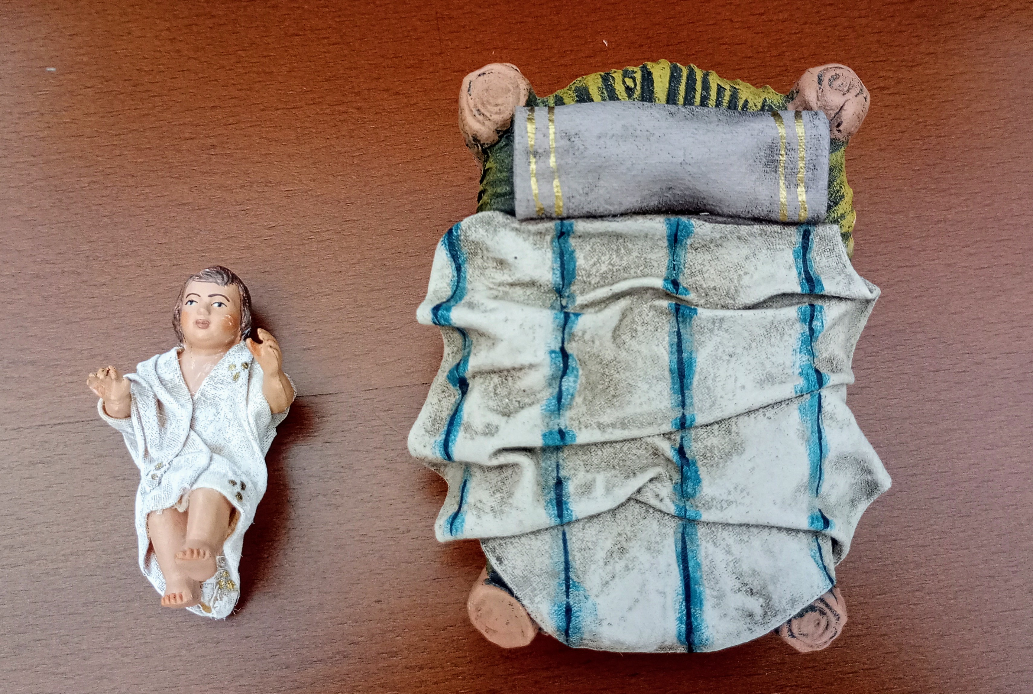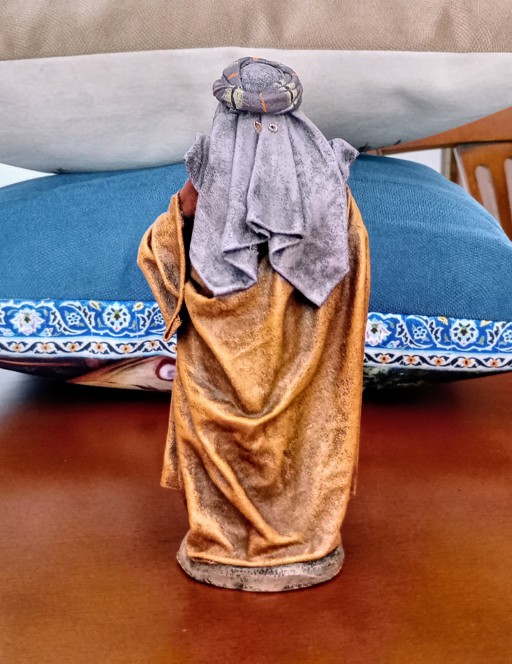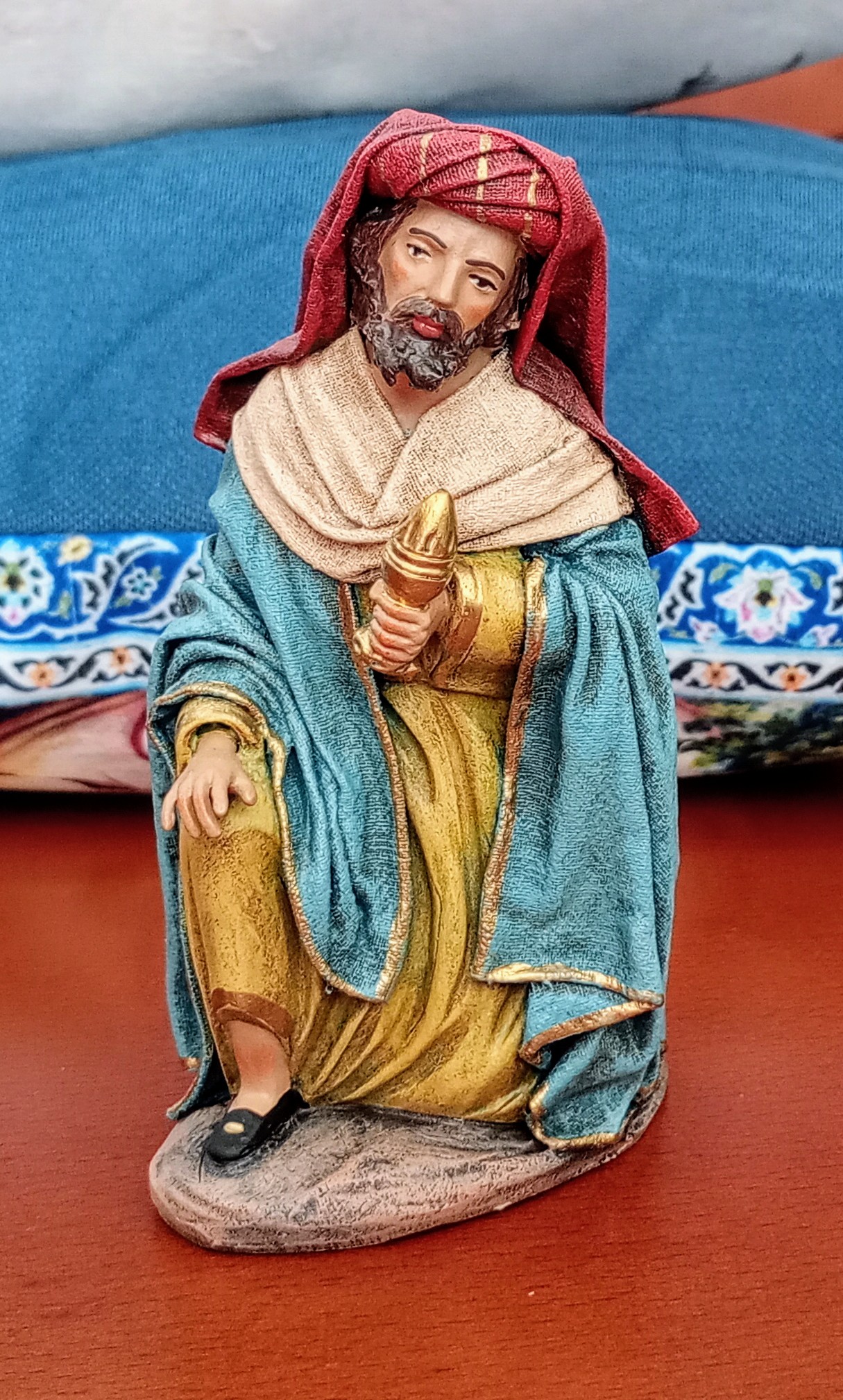 Se vende nacimiento de 17cm. en muy buen estado, completo, en barro de Maestros Artesanos, compuesto de María, San José, niño Jesús, pesebre, burro, buey, ángel, 3 reyes y construcción incluida.