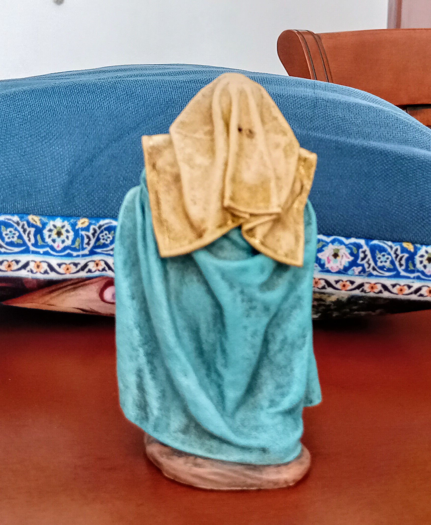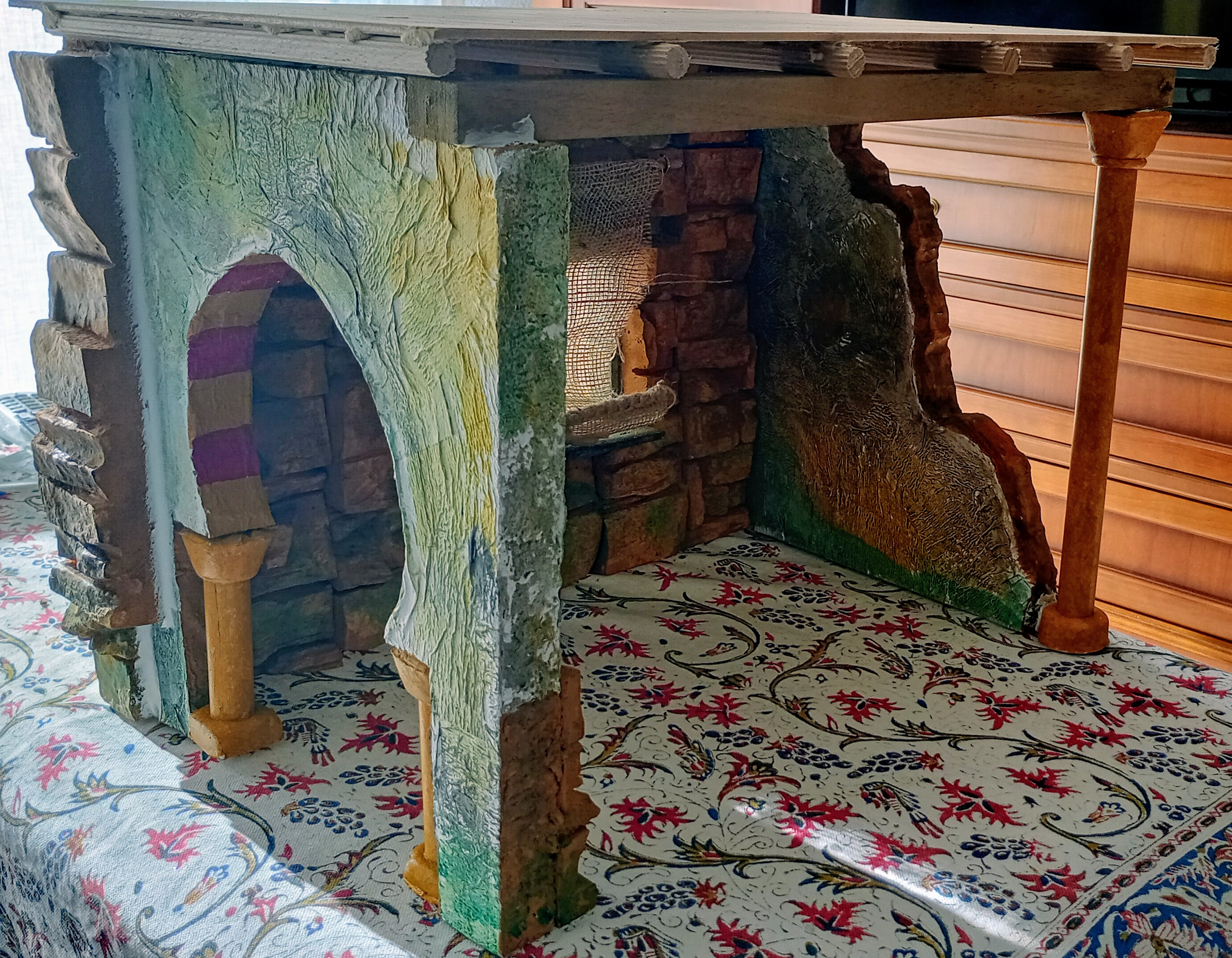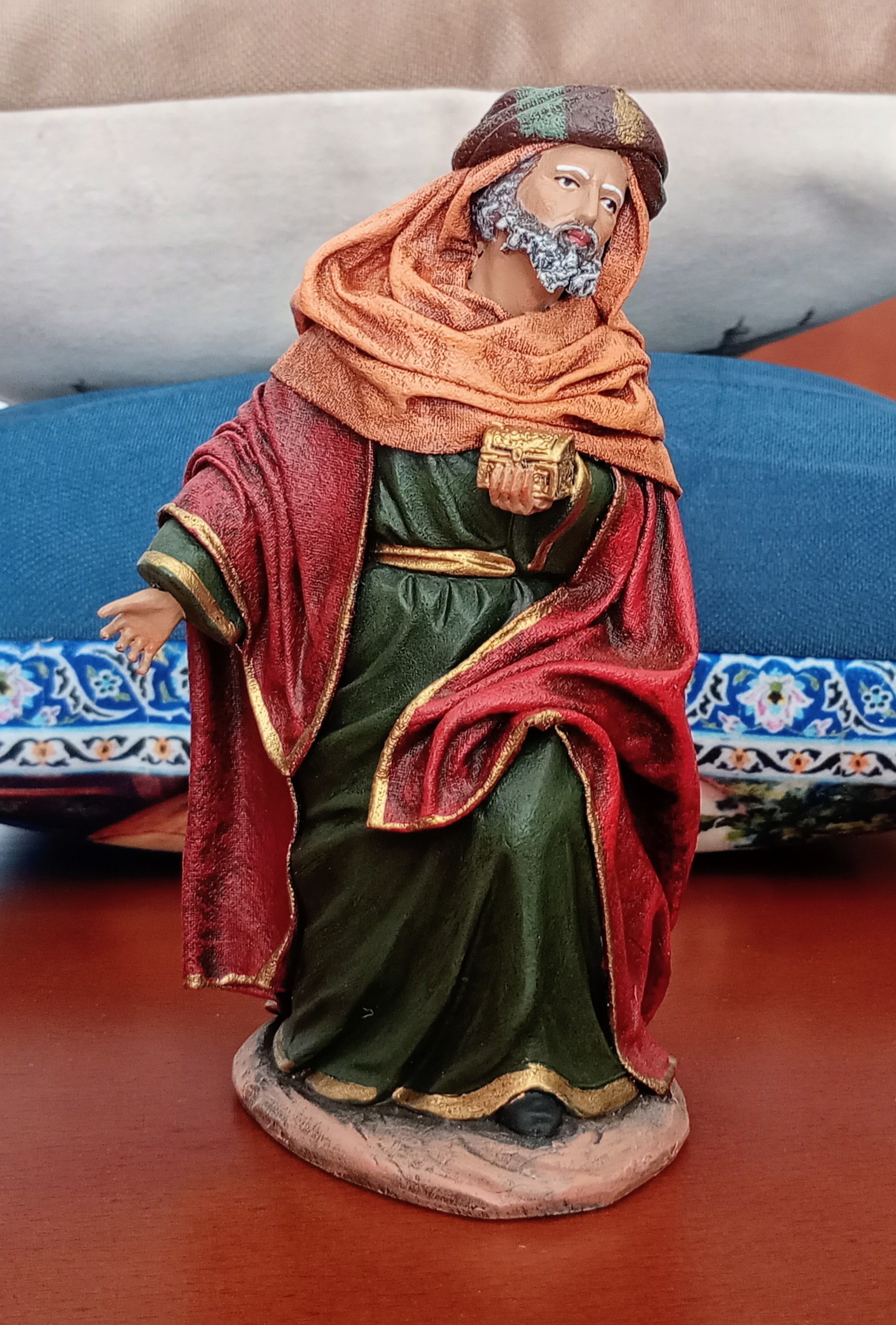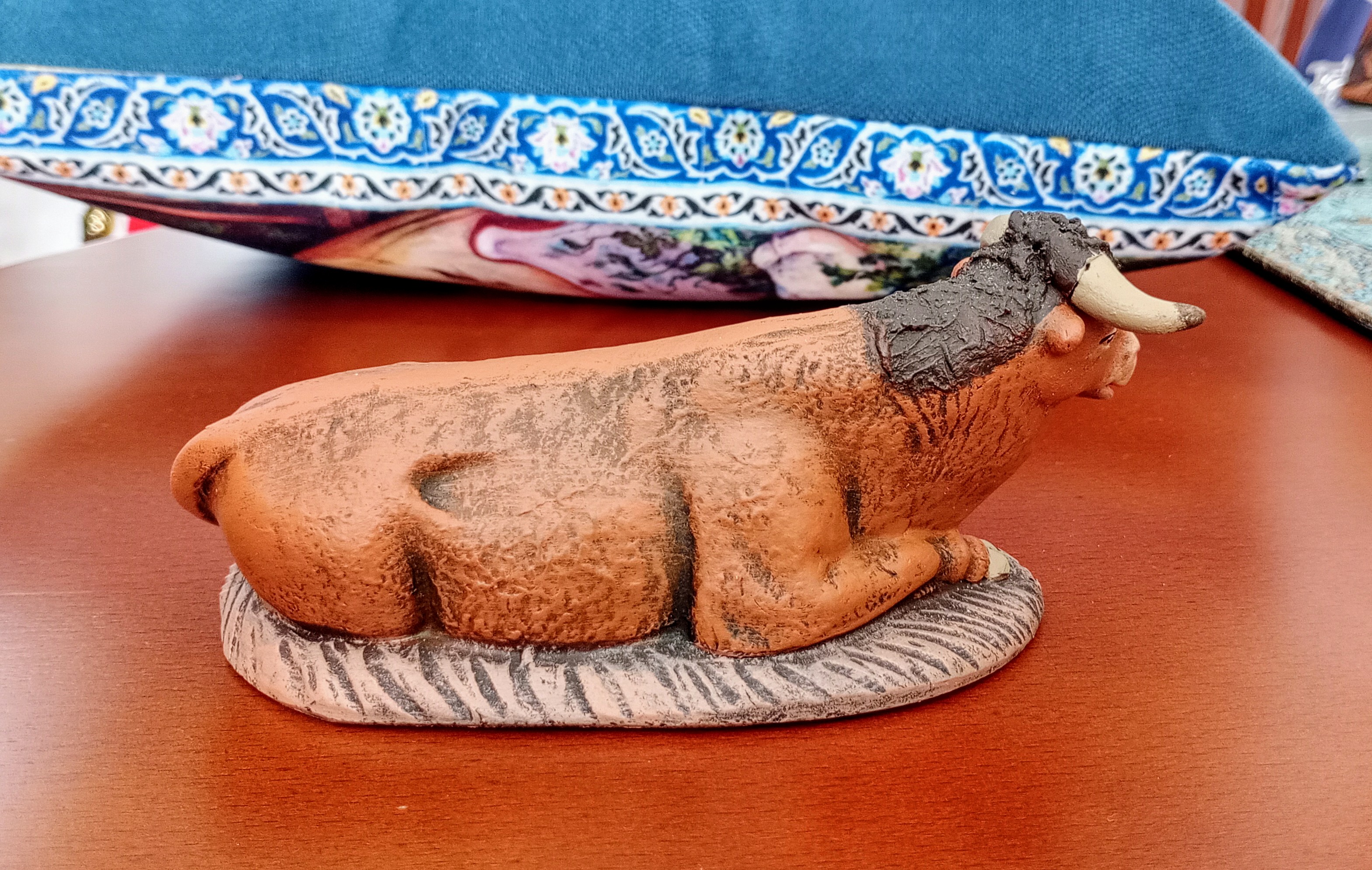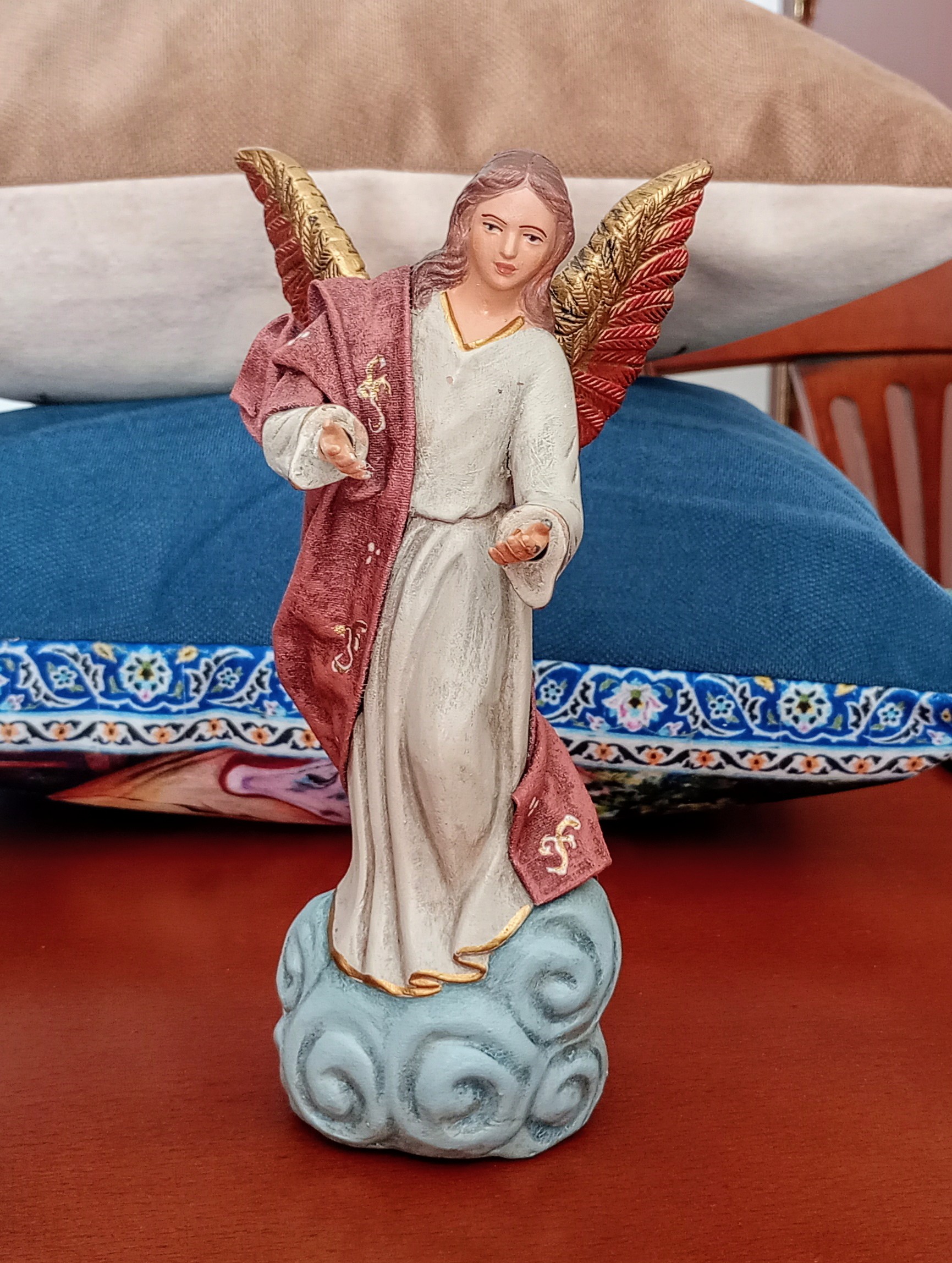 Se vende nacimiento de 17cm. en muy buen estado, completo, en barro de Maestros Artesanos, compuesto de María, San José, niño Jesús, pesebre, burro, buey, ángel, 3 reyes y construcción incluida.