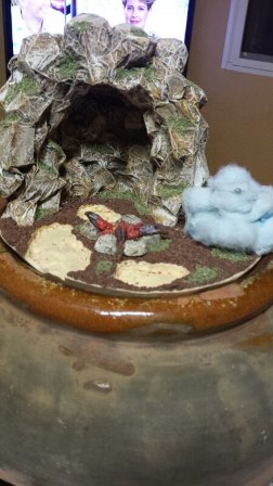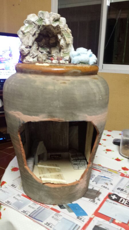 Nacimiento realizado dentro de una tinaja de barro, con permiso de Bob-trenzzas, de quien cojí la idea, la verdad es que tenía razón cuando decía que era muy dificil trabajar en un lugar tan reducido. A ver que os parece!