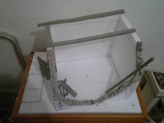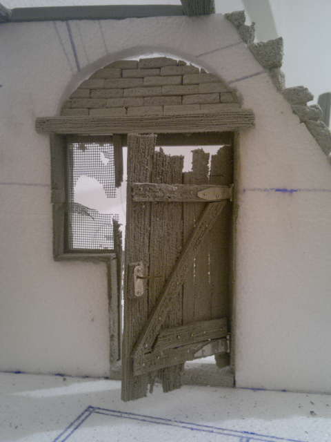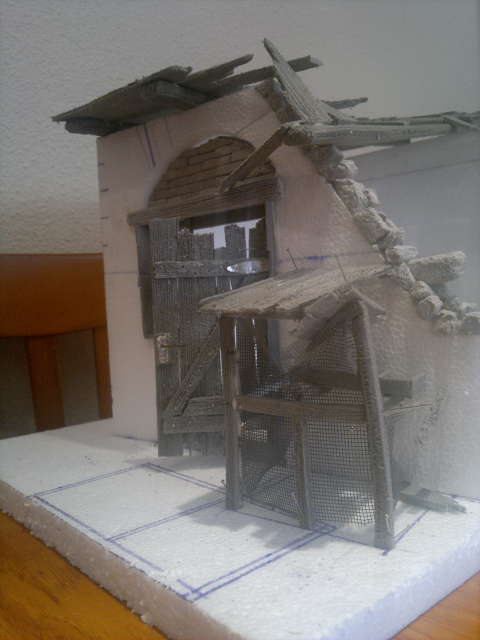 3-despues puse ocre y un pelin de blanco y con el pincel mas seco le di por zonas mas o menos como yo creia es decir, deje las esquinas bordes de los desconches, etc que esa zona para mi pesar es mas oscurita.