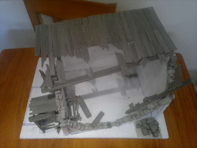 2-mezcle negro y blanco para hacer un tono gris roca, y le daba punteandolo, es decir en vez de arrastrar el pincel le doy como para dejar piquitas,