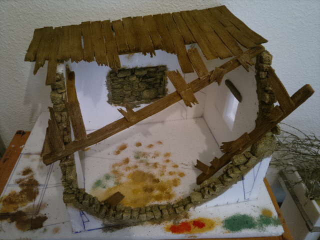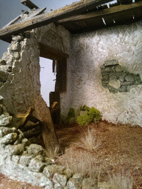 3-despues puse ocre y un pelin de blanco y con el pincel mas seco le di por zonas mas o menos como yo creia es decir, deje las esquinas bordes de los desconches, etc que esa zona para mi pesar es mas oscurita.