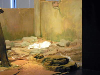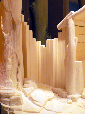 En un Nacimiento, a través de la embocadura, el espectador puede ir agachándose poco a poco y, la mayoría de las veces, al final llega un momento en que ve algo que no debería ver (estructura, lámparas, final del celaje,etc). Bueno, cuanto antes vea lo que no tiene que ver, antes vuelve el espectador a su lugar normal de observación porque sabe que no debe seguir agachándose. No sé si me explico bien.