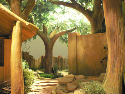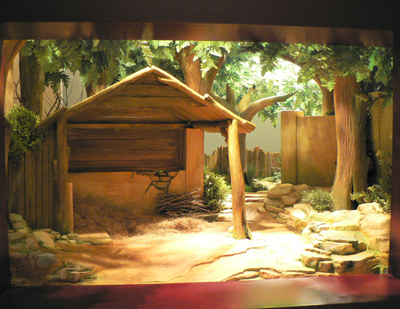 Hay otra opción: colocar varias macetas con cactus justo detrás del lugar donde se sitúa el espectador para ver el Nacimiento y a una altura suficiente para que oblige al espectador a no seguir agachándose antes de que se comiencen a ver las lámparas y demás.