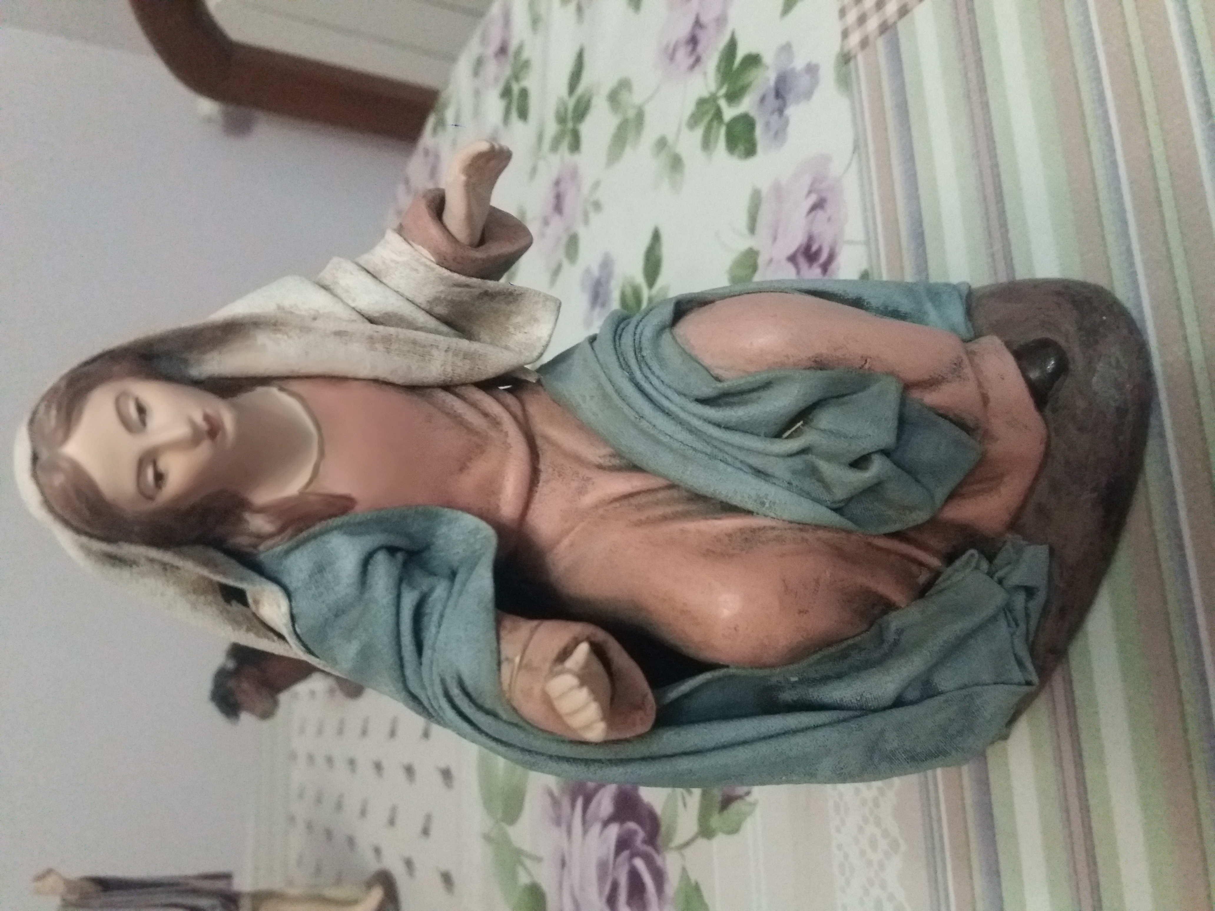 Nacimiento completo para Belén compuesto por José, María, Jesús en pesebre, Ángel, buey y mula del artesano pesebrista murciano Griñán. Buen estado de conservación. Únicamente faltan las coronas de San José y María y el cayado de San José. Se vende con intención de cambiar estas figuras por otras diferentes para montar el Belén hogareño para la próxima Navidad. Las figuras son de 17 cm de altura. El material es barro cocido con tela encolada.
