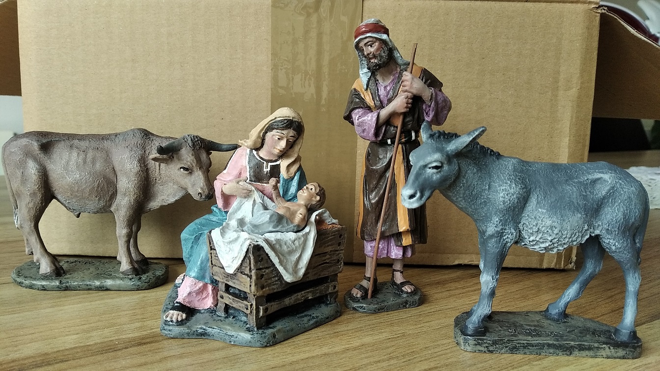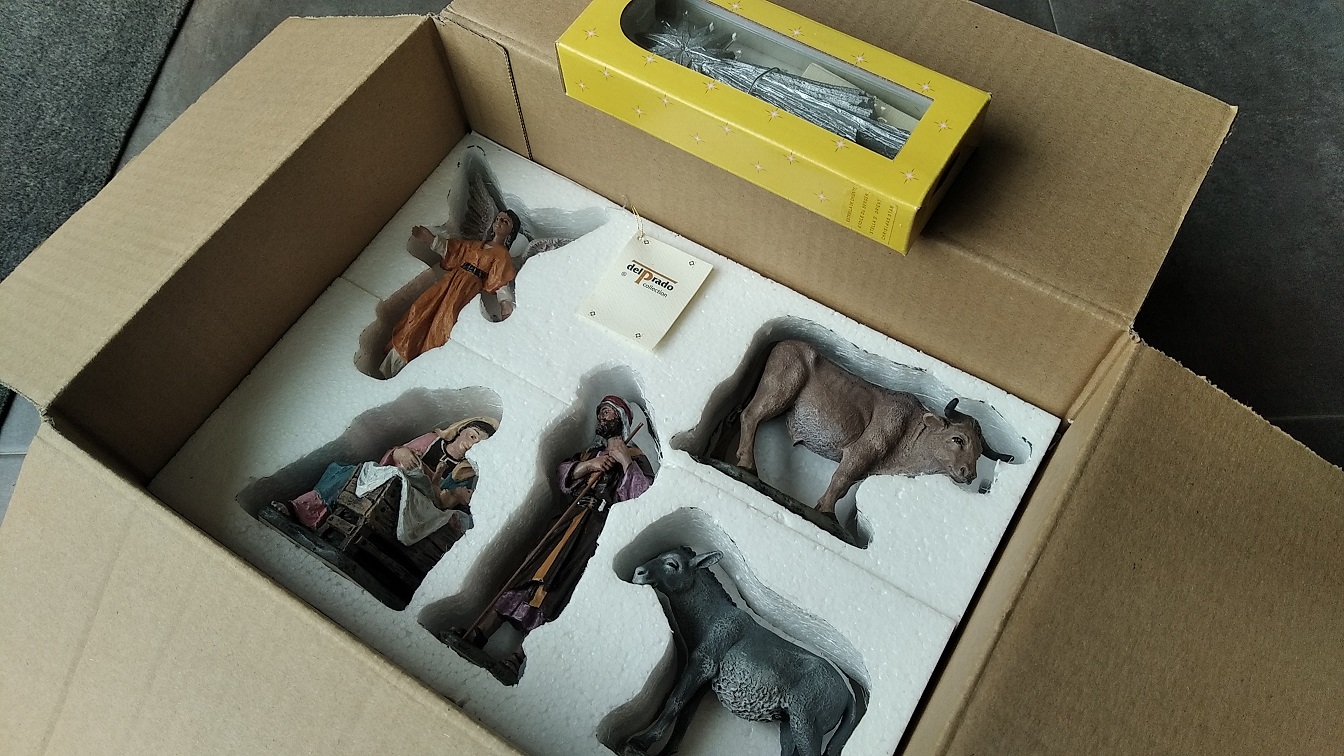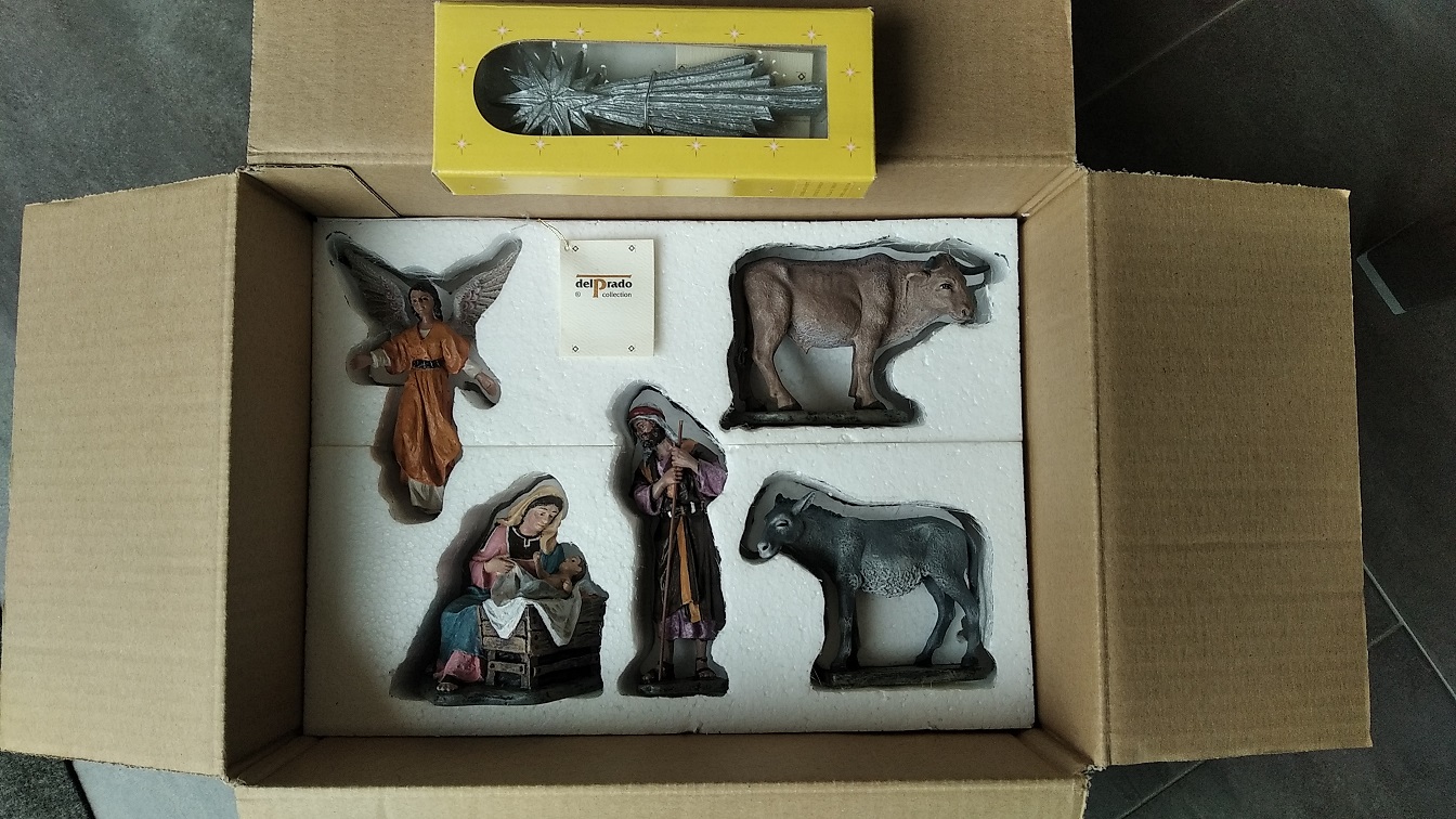 Consta de 7 piezas: Niño Jesús, Virgen Maria. San José, mula, buey, Ángel de la Natividad y estrella de oriente; de acuerdo con las fotografías adjuntas.