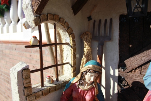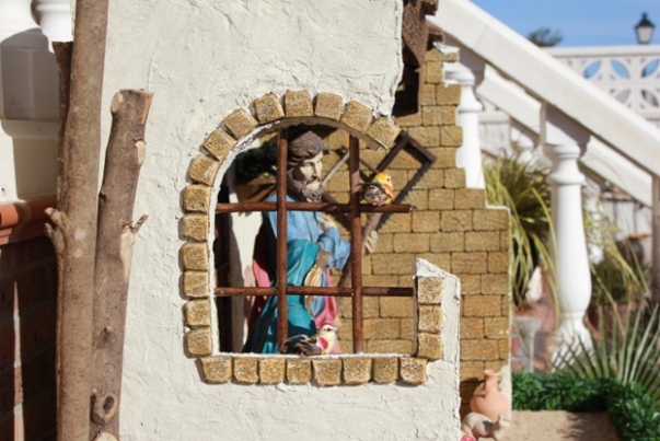 Protege las bases de las figuras ( y si quieres el suelo del portal) con papel de film de cocina, el transparente. Enróllalas bien.