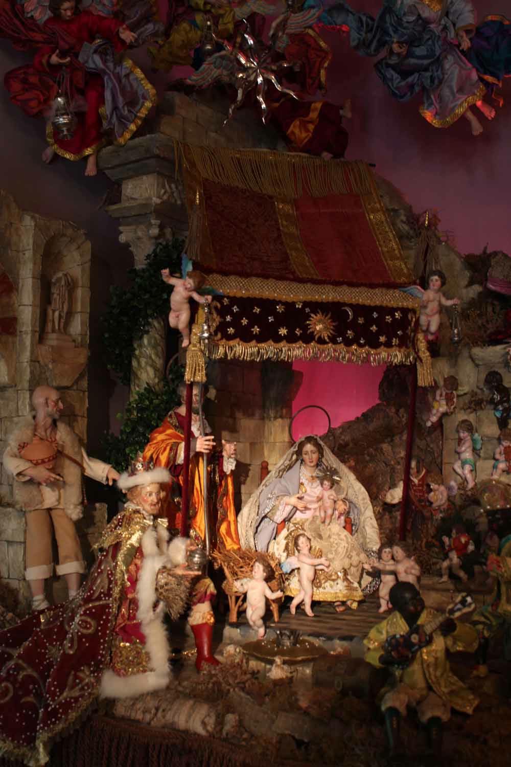 Sin palabras, como siempre. Una escena realmente evocadora, deliciosa y con buen gusto. En tu línea. Difiero de lo que dices que " te limitas a reproducir el estilo napolitano", porque estas escenografías tuyas tienen un sello muy personal tuyo; realmente parece una escenografía teatral barroca, propia del artista que eres. La composición, la iluminación,... Parece como un sueño.