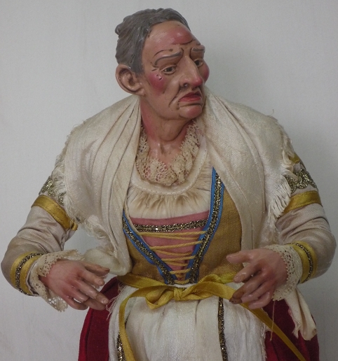 Se trata de una figura napolitana re- policromada a mi gusto y a mi estilo, como siempre al óleo. "Vendedora", 35 cm., terracota y ojos de cristal. Colección particular. Un saludo desde Sevilla.