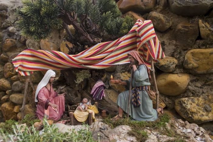 Dos detalles de un belén realizado por José Manuel López Sotillo, con figuras de Mayo.