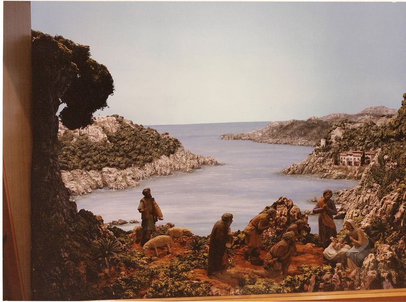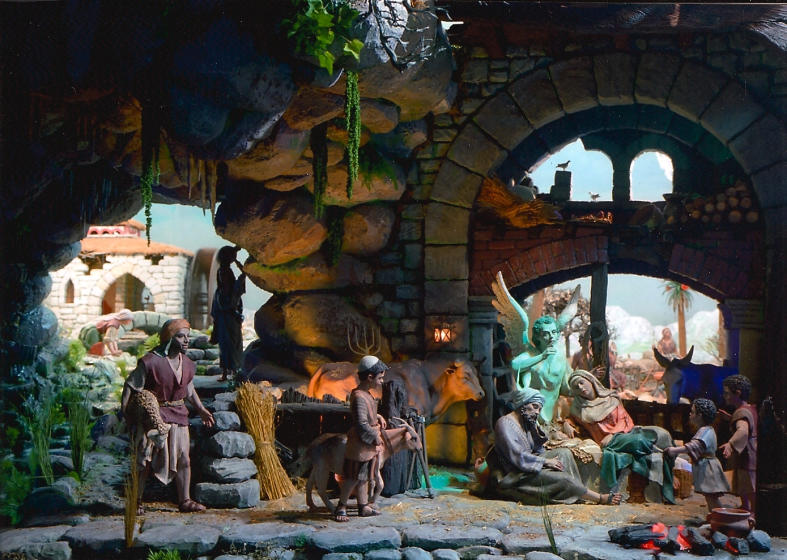 Las dos fotos corresponden a una panorámica y un detalle del Portal de un belén realizado por Pedro Pablo González Mekolay, de Vitoria, con figuras de Mayo.