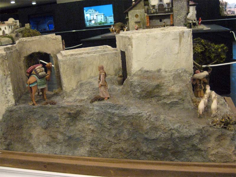Su centenar de casas, construidas de losas de piedra de toba y pedernal, su iluminación, sus meticulosos detalles en puertas, ventanas y balcones, un fuego ardiente, sus 54 metros de carreteras de sílex, sus tres ríos con una longitud total de casi 10 metros, con 7 puentes y 4 acueductos, para un total de 18 metros soportados por 38 arcos, uno de ellos con tres fragmentos de las columnas de mármol de la fachada de la Basílica de San Pedro, obtenidos de la restauración de la columnata de Bernini, hacen de esta obra un motivo suficiente para disfrutarla. Pero hay más, 4 muelles, 2 paredes con estalactitas, un manantial, 730 pasos, de los cuales más de 400 realizados con mármol de la columnata de San Pedro y el resto con piedras de Birmania, de Belén y de los santuarios históricos de Greccio y de San Giovanni Rotondo, que junto con sus 24 cuevas, utilizadas como establos y refugios de pastores con sus rebaños, en otras tiendas que contienen garrafas de vino y aceite y 50 sacos hechos a mano que contienen trigo, sal y harina, confirman la magnitud del pesebre.