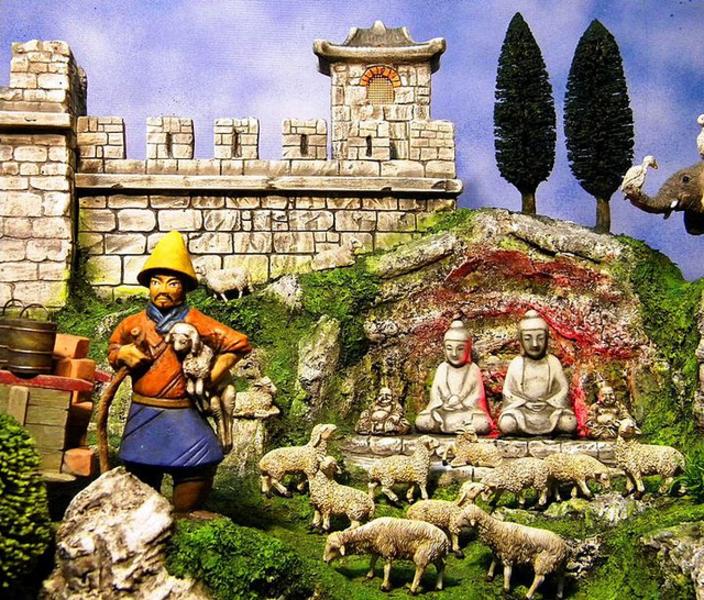 Forma parte de una serie de belenes temáticos del autor expuestos en Monsampolo del Tronto (Italia) y este en concreto, forma parte del homenaje al jesuita Mateo Ricci de Macerata, en el cuarto centenario de su muerte, reconocido como uno de los más grandes misioneros en China, creando un belén que es un homenaje de paz y un homenaje a la Iglesia Necesitada, de acuerdo con la cultura china.