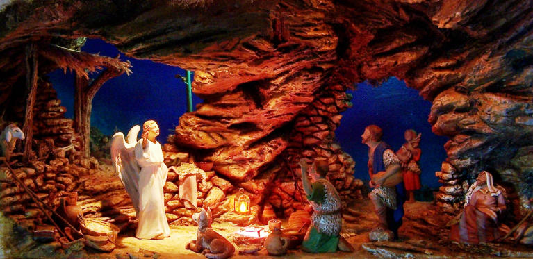 El autor del portal, el prestigioso maestro italiano Francesco Artese, de 55 años de edad, ha colocado el lugar donde nació Jesús en una reproducción de una iglesia rupestre, una de las 150 existentes en los Sassi.
