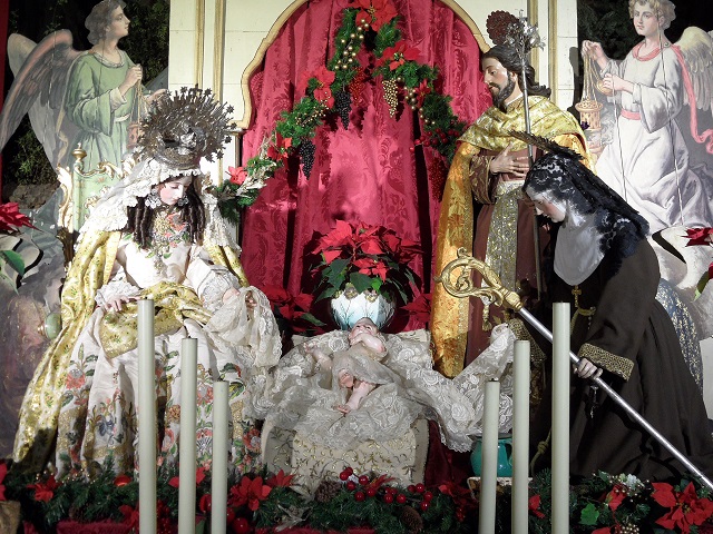 Figuras del Misterio de José Ángel Oviedo (20 cm) con otras de primer plano de José Joaquín Pérez (20 cm) y en segundo plano, figuras de José Luis Mayo (14 cm), para una obra de unas dimensiones de 1,50 x 1,20 m.
