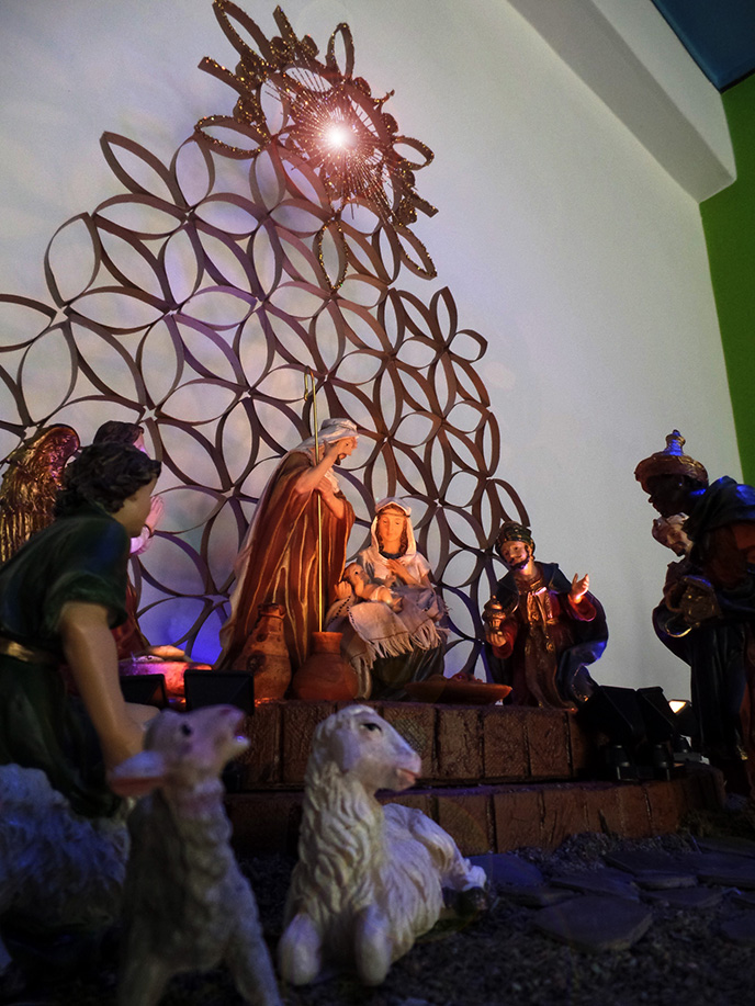 Hermosa y entrañable dulzura en la expresión de las figuras, armoniosa puesta en escena, y original utilización de los materiales , le dan a este Nacimiento una dignidad que merece la más sincera de mis felicitaciones.
