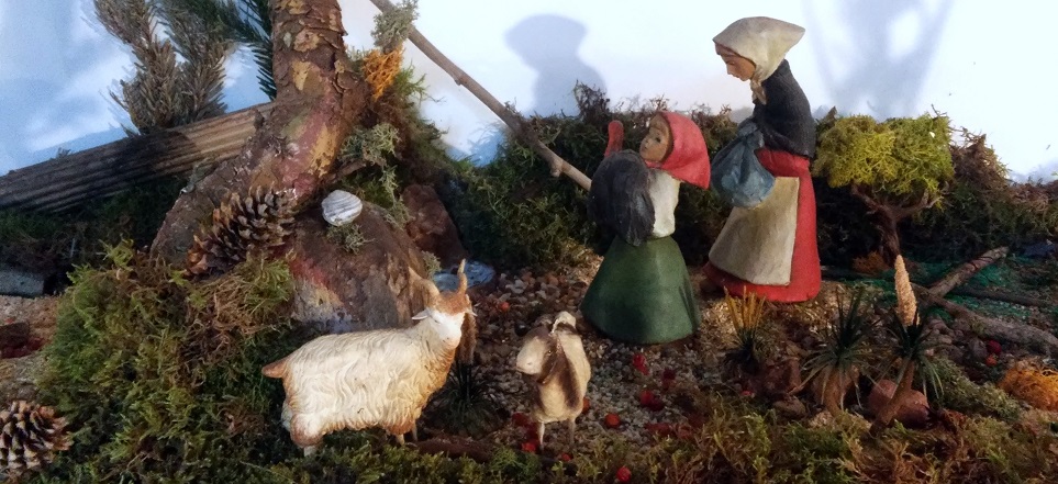 El Silvano de Esther Font es casi decorativo y nunca pensé que podría llegar a participar de un belén, pero con estas figuras encaja. Lo divertido es que tanto en directo como en las fotos no se le acaba de ver bien, es una imagen borrosa, como entrevista entre las sombras del bosque, muy adecuado para este personaje de "hombre de las nieves" semimítico.