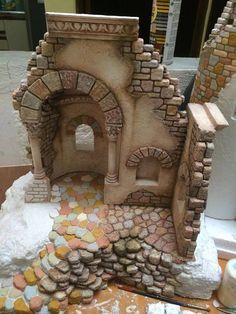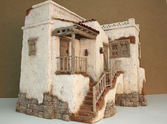 Montaje con imagen del belén de corcho, musgo y arena de LUISPO
