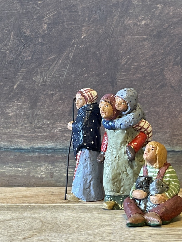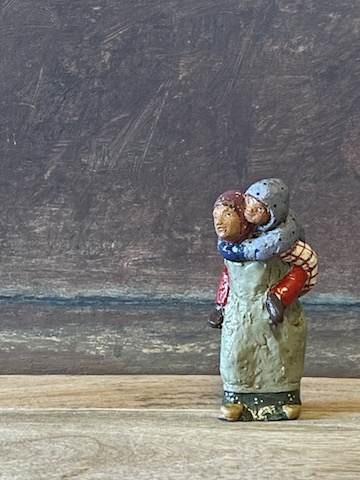 Abdiel, nos recuerda esta fiesta, que no se teje con la nuestra de Navidad, el nacimiento de nuestro Cordero ( cf. el Nacimiento de Felorz en torno a la Migdal Eder ) - Ver foto - . Pero esta figura moldeada en barro de Montserrat Ribes, de este pequeño vendedor de cacharros... nos recuerda algo más, que todos somos hijos de un mismo Dios, y que todos hemos sido moldeados con el mismo barro y echalados con el mismo Espíritu.