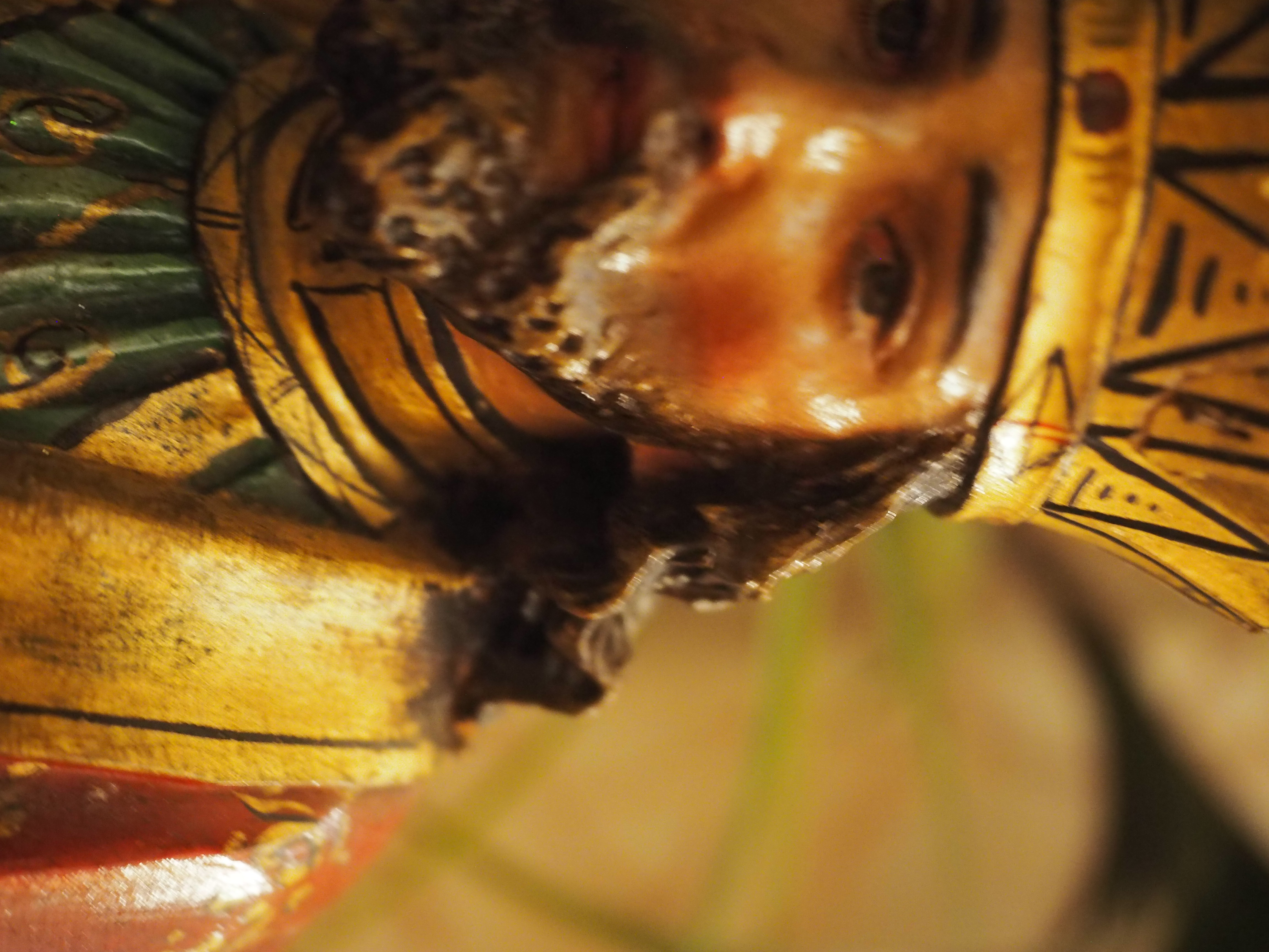No se si os habéis fijado que el camello tiene una prótesis en la pata izquierda delantera, lleva tres tirafondos. debió pasar por el quirófano de algún traumatólogo. Esto, el test del "toc, toc" que le apliqué con un nudillo de mi mano y la foto que os adjunto comfirmaron mi sospecha de que son de madera.