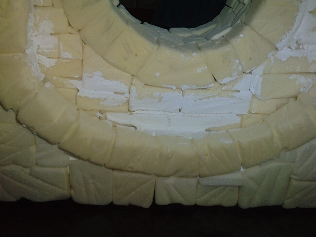 manolito, a tus piedas le faltan golpes,, me explico, yo le doy con un cepillo del pelo golpecitos, todo se llena como de poros, agujeritos, luego a la hora de pintar, el primer color (vede oscuro)se mete en todos estos agujeritos, y al dar las veladuras se realzan estos poros., mas o menos. Saludos.