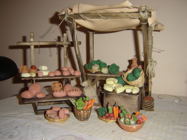 Ah se me olvidaba decirte que los chorizos los hice con arcilla y los ajos y el queso tambien, y las frutas con arcilla y los tomates, naranjas, pimientos, limones,platanos con plastilina, en esos menesteres me ayudaron mis niñas. Un saludo